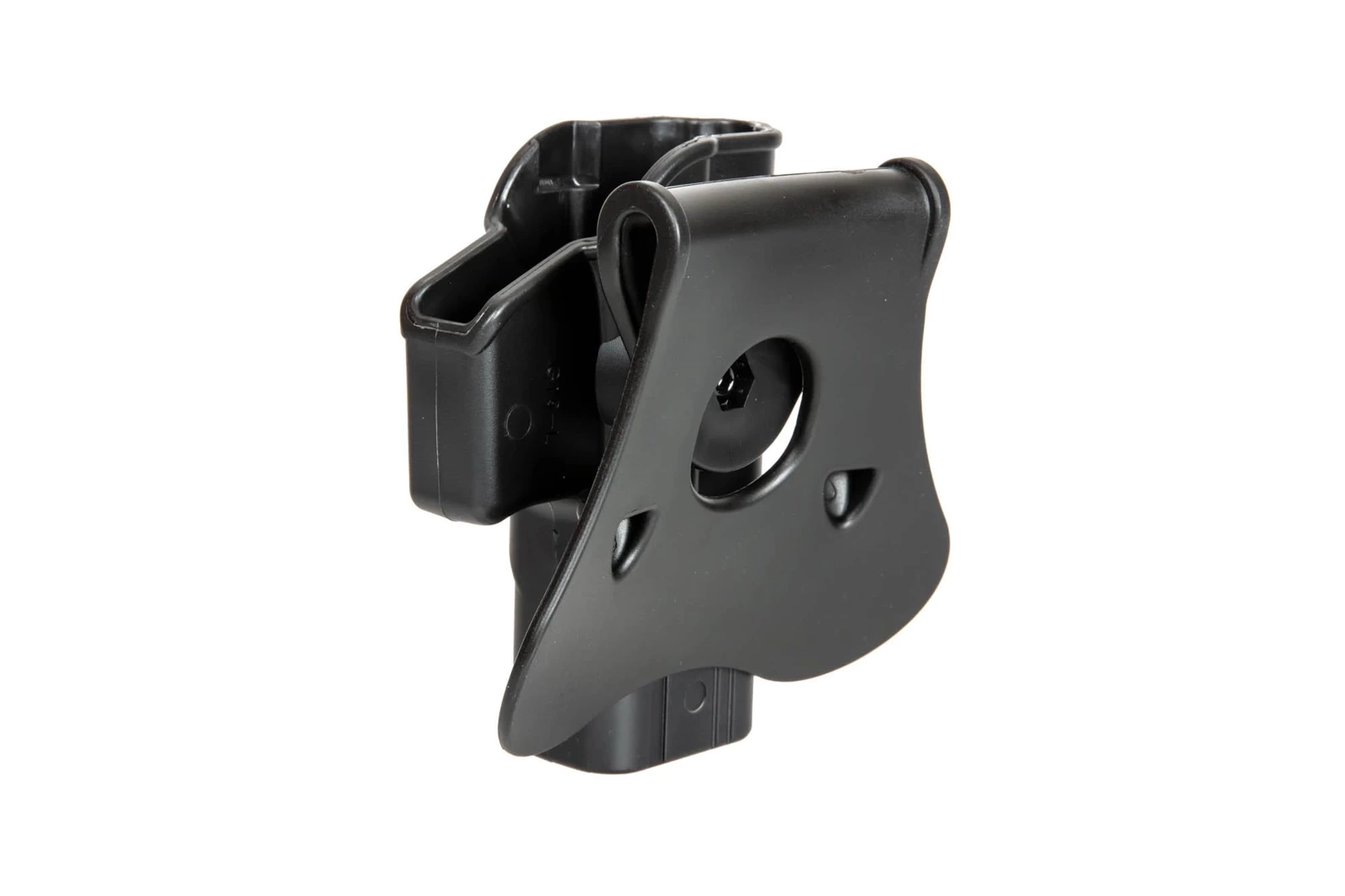 A pistol holster made of durable polymer by Amomax for replicas. It features an intuitive lock, released with an index finger when reaching for a gun.