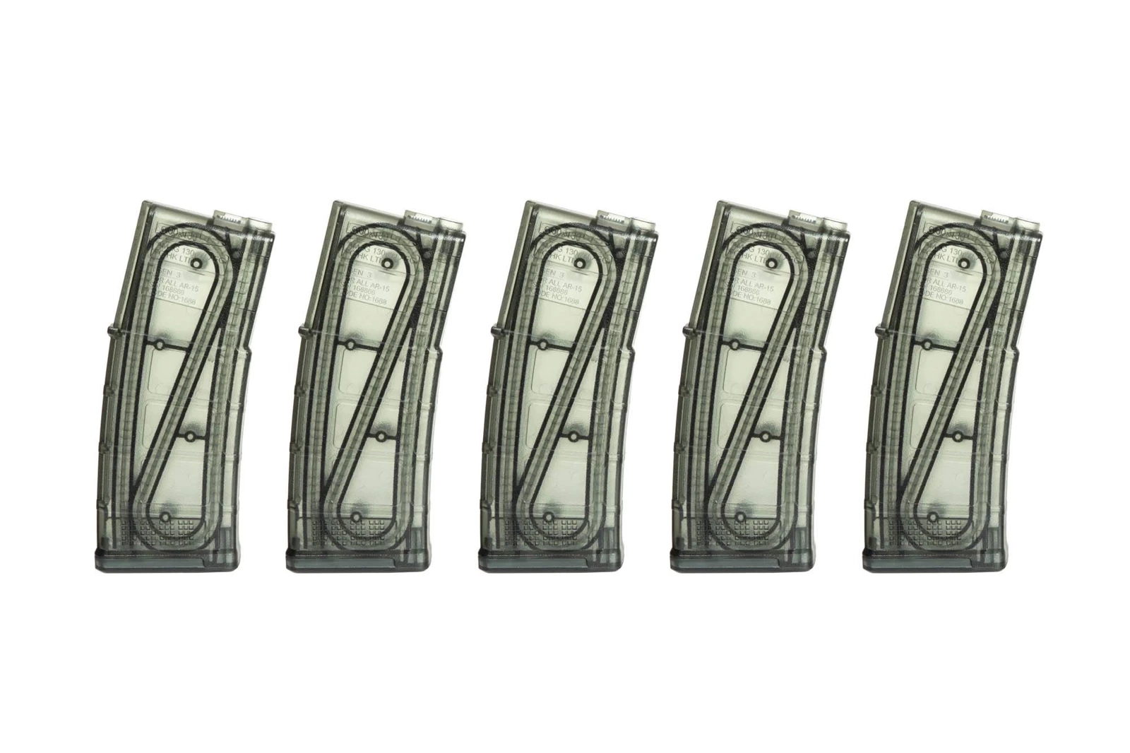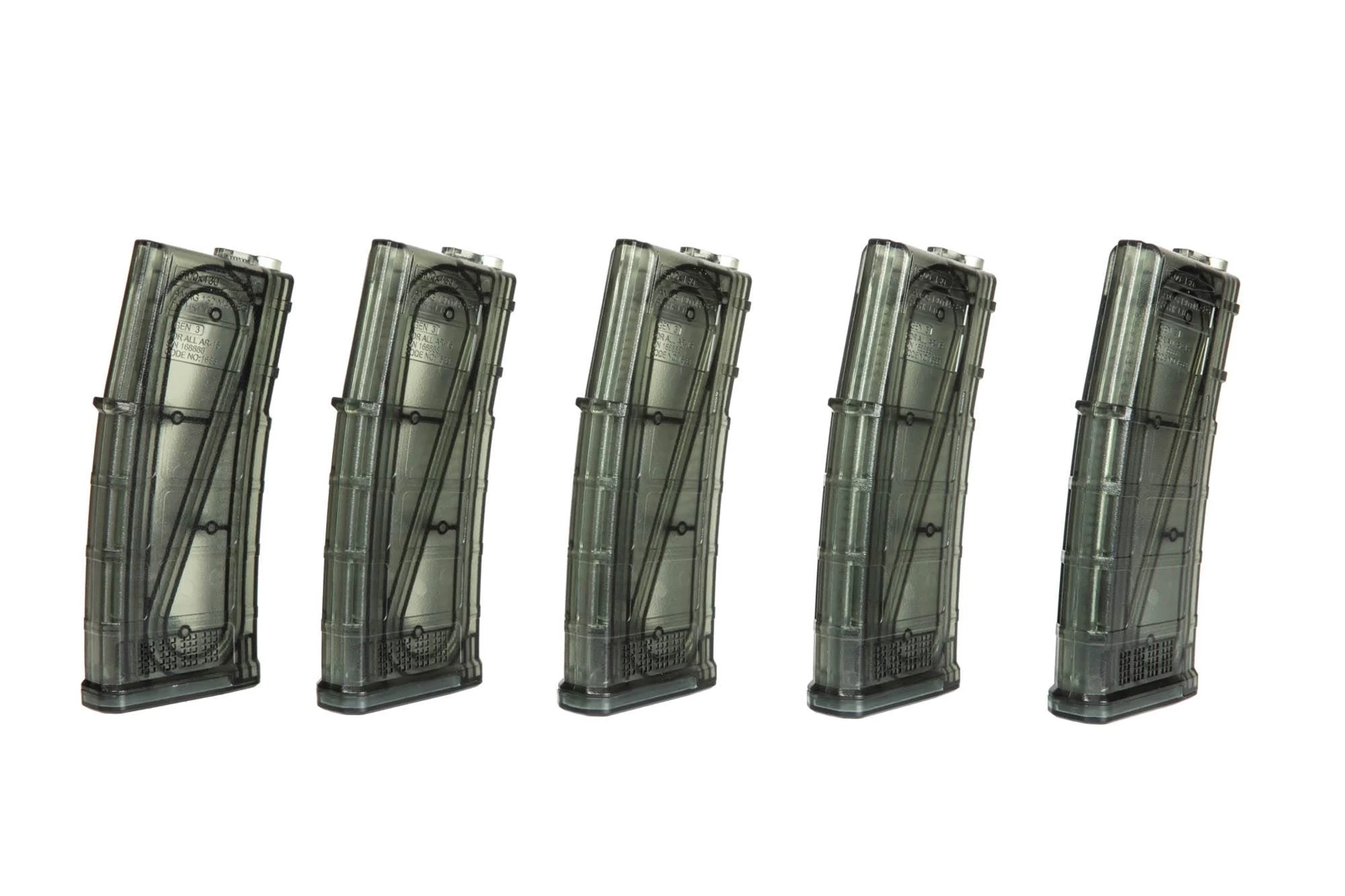 Set of 5 Mid-Cap 130 BB Magazines for M4/M16 – Transparent
