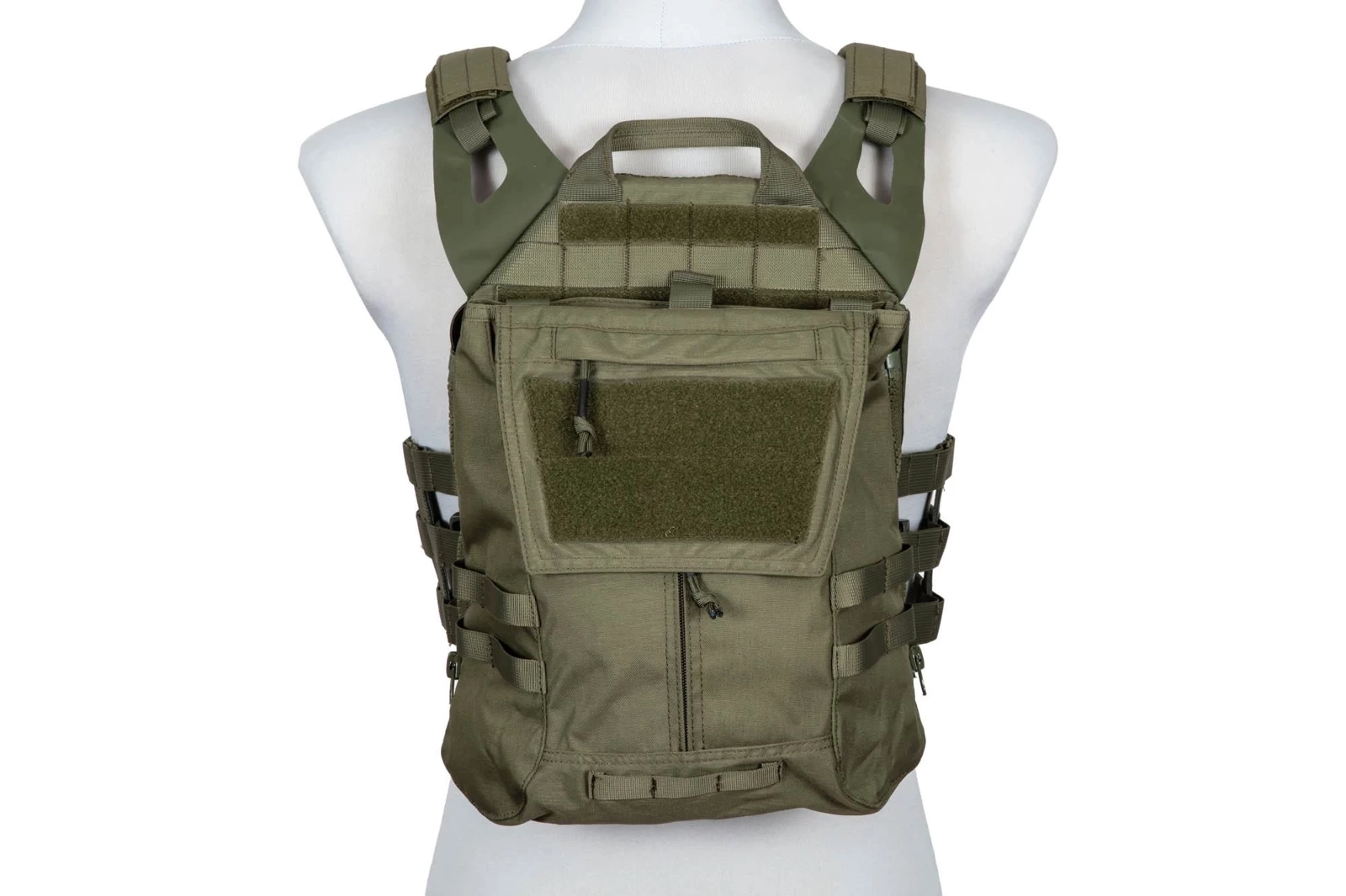 A new version of a Plate Carrier Jump tactical vest made by GFC Tactical from light and durable Nylon 1000D. The vest is adapted to carrying a set of ballistic inserts and its compatibility with MOLLE / PALS load-bearing system enables the attachment and any configuration of additional pouches, pockets or bags. The set includes a capacious assault pack attachable with a zipper that can be used for carrying additional equipment and hydration bladder.