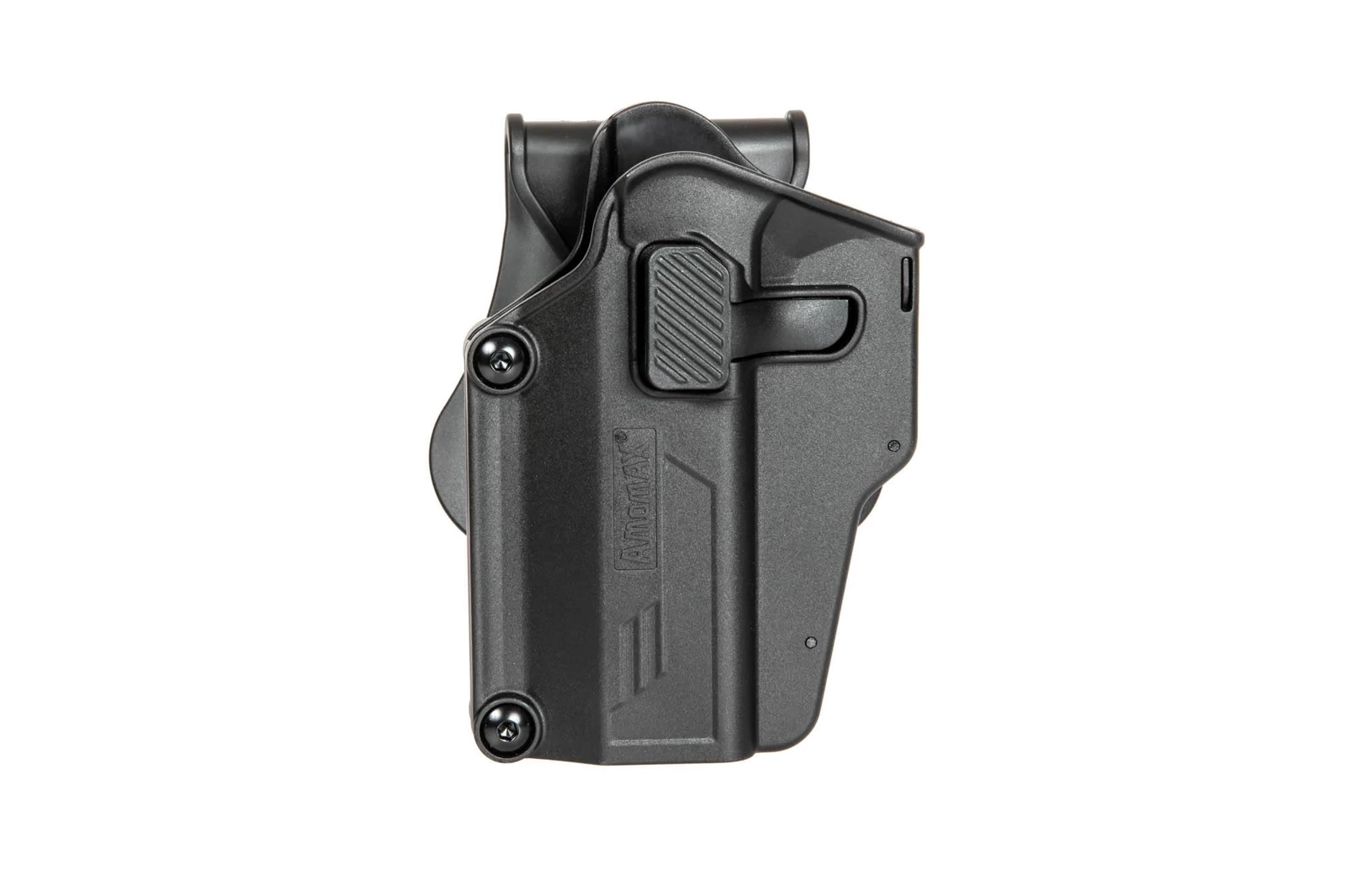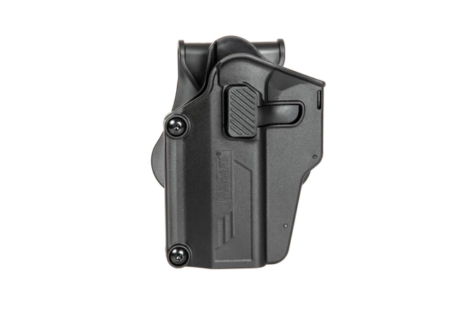 A universal holster made of durable polymer by Amomax for replicas. Thanks to a special construction, the holster is compatible with over 80 types of pistols, including the most popular ones, such as Glock, Sig Sauer, CZ, Ruger, Beretta or Colt 1911.