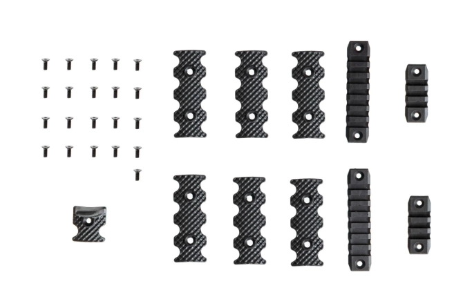 A set of additional accessories, dedicated to the Centurion Arms CMR rails. Made of durable Dupont ™ Zytel polymer material. The covers and the hand-stop have been covered with a texture resembling the surface of a golf ball, which significantly improves the grip.