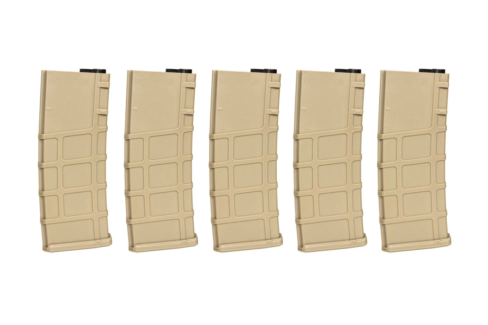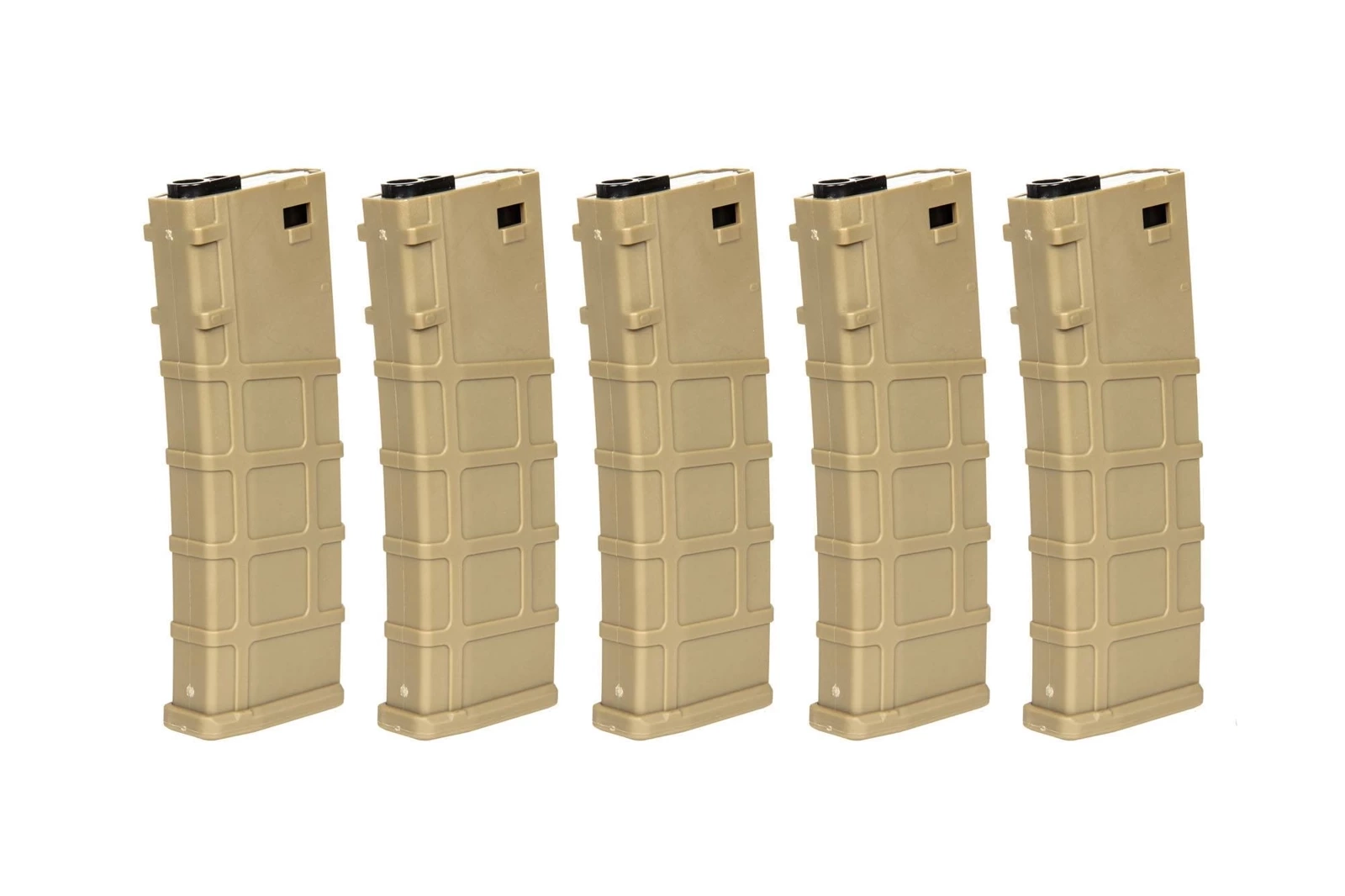 Set of 5 Polymer 200 BB's Mid-Cap magazines for M4/M16 replicas - Tan