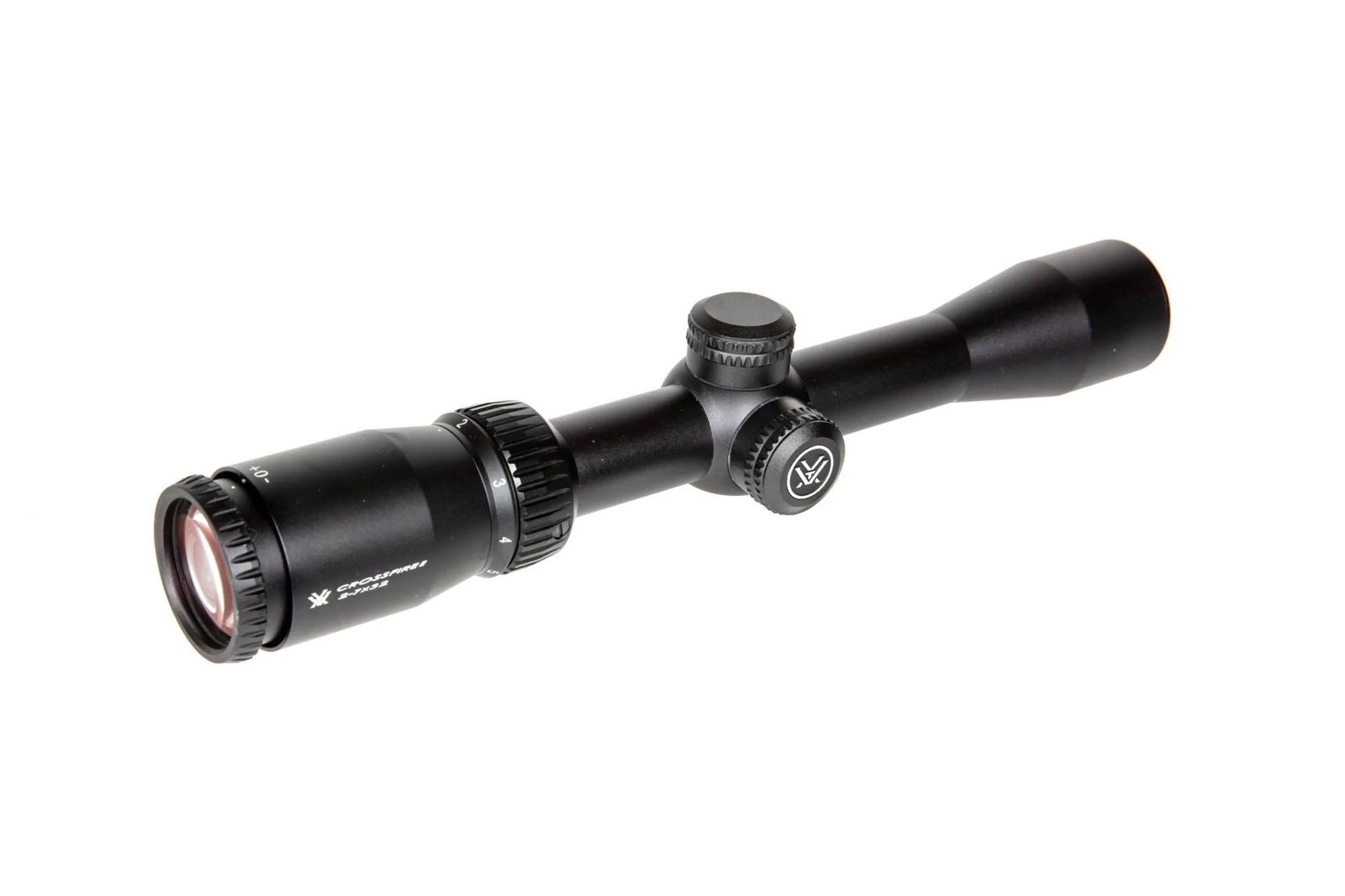 A rifle scope manufactured by Vortex made entirely out of metal. The magnification range of 2-7x allows for precise observation and aiming. The scope comes with a standard 22mm RIS / Picatinny rail mount. The adjustment rings are secured with protective nuts.