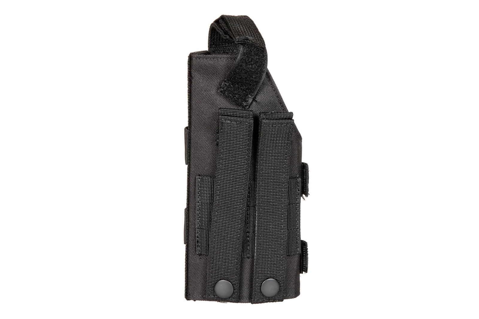 The holster is made out of durable nylon. It is mounted with Molle Pals. Its height is 195 mm with the possibility of adjustment. The width of the holster is also fully adjustable. Thanks to this, it can accommodate both a compact and large pistol as well as non-standard models.