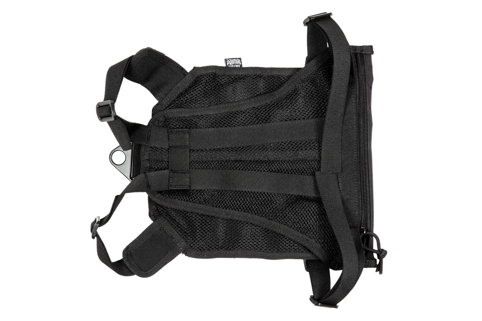 At the center of the harness there is an evacuation handle, and on the front and back there are two points where you can attach a leash / lanyard. On the sides of the harness there is a row of MOLLE webbing covered with Velcro. The entire harness was made with the use of a soft mesh, which allowed to decrease the weight of the harness and increase breathability.