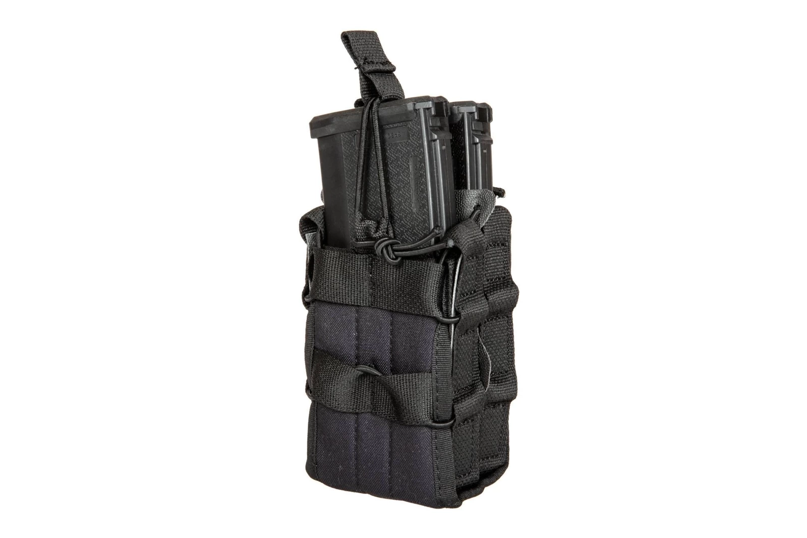 Double universal shingle pouch for 2 magazines made out of lightweight and durable Aspen 500D. The use of solid seams and high-quality accessories such as tapes, Velcro and buckles additionally increase resistance and durability. It can be adjusted to accommodate AK / M4 / G36 / M14 / SR25 magazines and many others. Each magazine is secured with a flexible shock-cord.