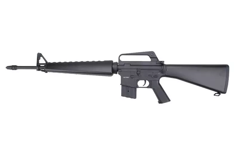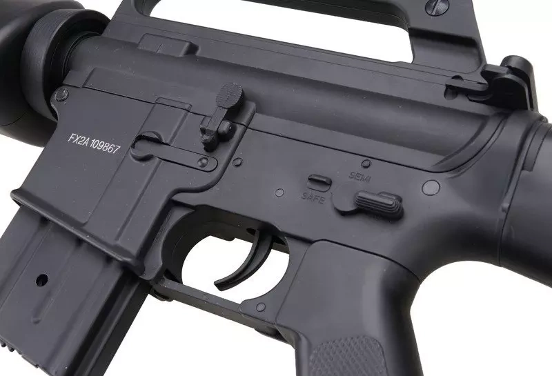 The 510mm long barrel ensures a high precision of shots what in combination with the muzzle velocity of about 400 FPS makes the replica a precision weapon which is perfect for a frontline assaultman or for a sharpshooter. The barrel is ended with a 14mm counter-clockwise thread which allows the mount of a sound suppressor. The front grip, just like the carrying handle, is typical for the A1 version of the rifle.
