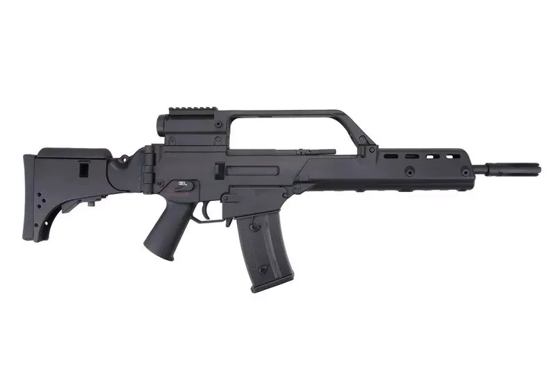 JG1538 from the workshop of JG is a continuation of the best replicas from this manufacturer - the JG608, which are already a legend in the airsoft environment. This version is equipped with an integrated barrel in the transport handle and a foldable to the side, full stock. In addition, on the top of the transport handle, on the level of a scope, is a RIS rail that allows for attachment of a reflex sight.