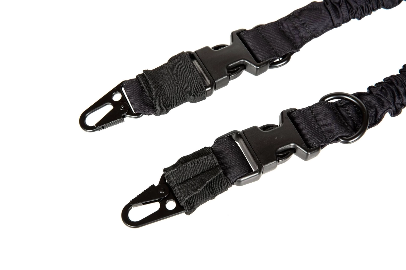 Thanks to the snap buckles, we can quickly detach the weapon / the entire suspension. At both ends of the sling, there are metal D-rings, to which we can attach one of the mounting carabiner and thus use the 1-point suspension.