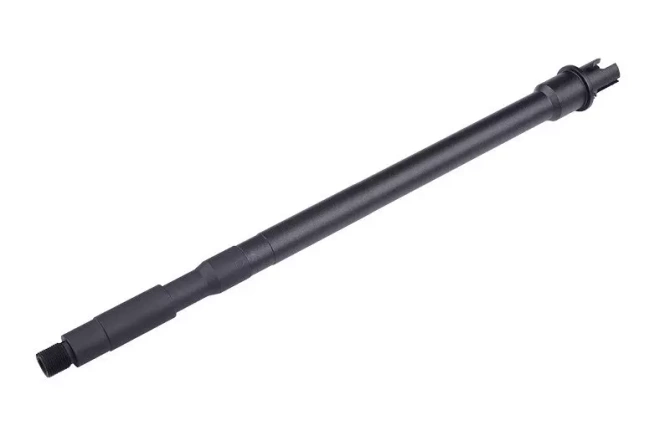A 270 - 380mm long outer barrel for M4 replicas. It is an optimal length for CQB scenarios for M4 replicas due to the usage of standard RIShandguards. The barrel has a 14mm, left-hand thread finish.