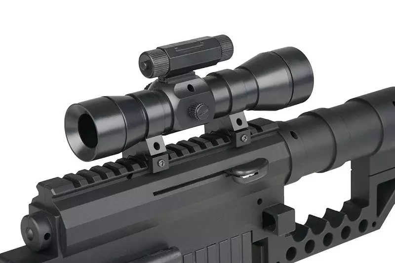A replica made almost entirely from polymer, with the exception of steel spring and metal assembly elements. The replica features a foldable stock and a bipod.