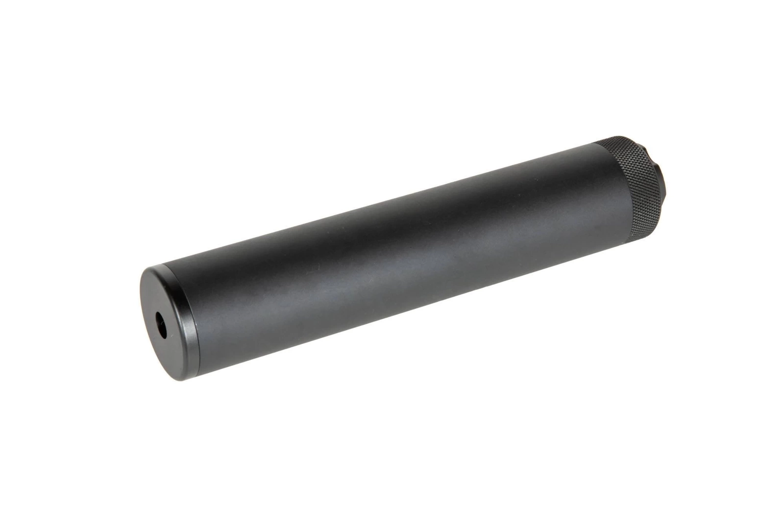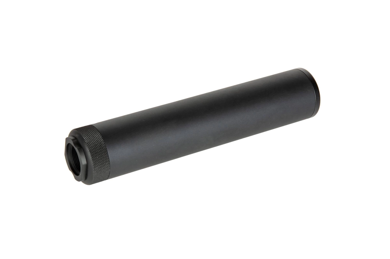 185.4mm long metal silencer. The silencer is fitted with two adapters for a 14mm right and left-hand thread.