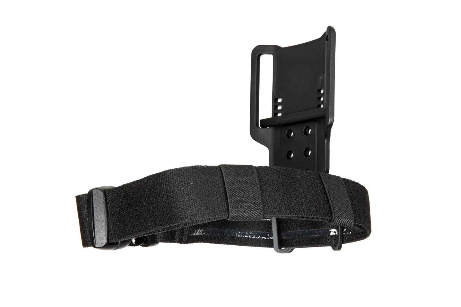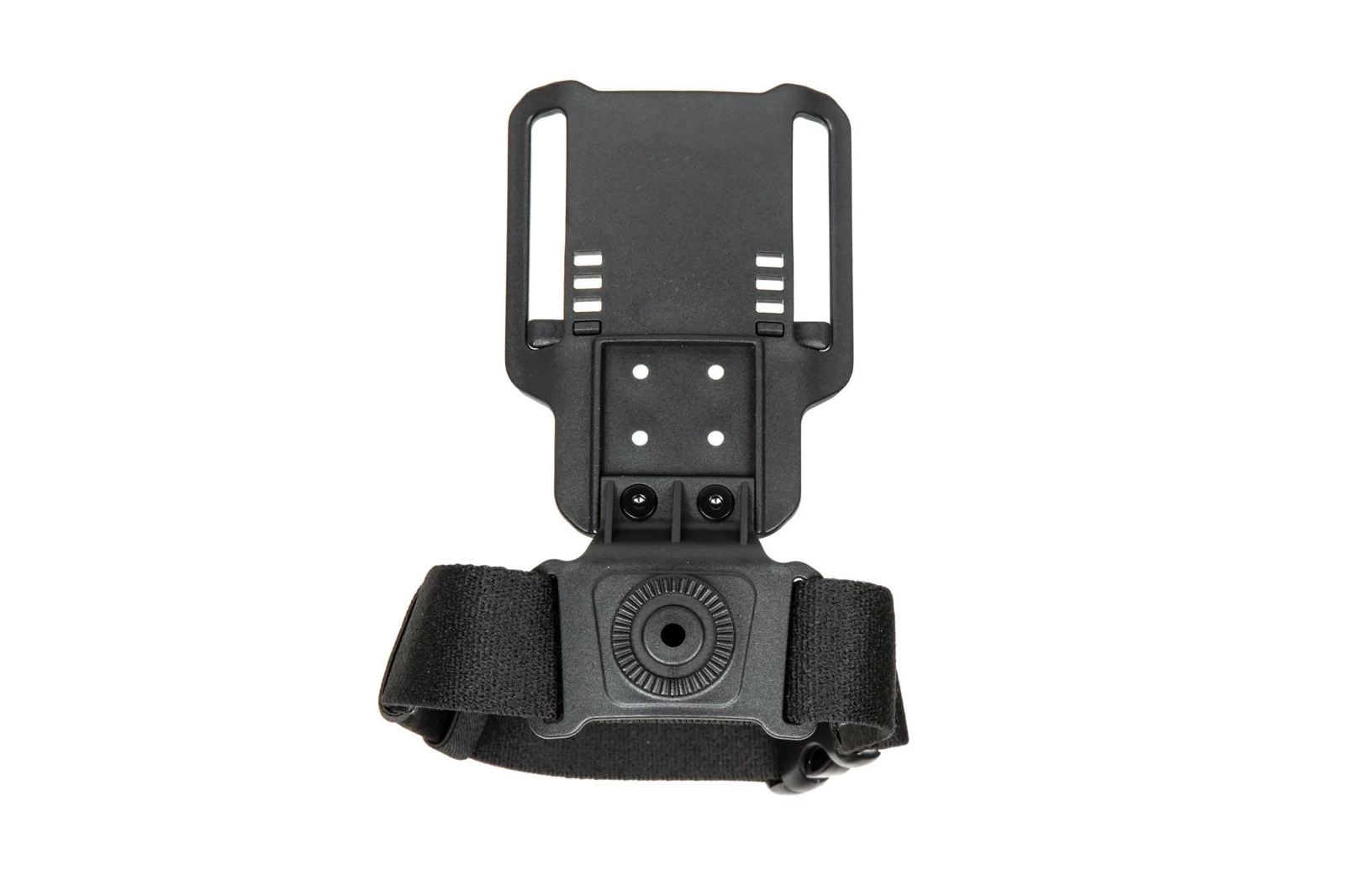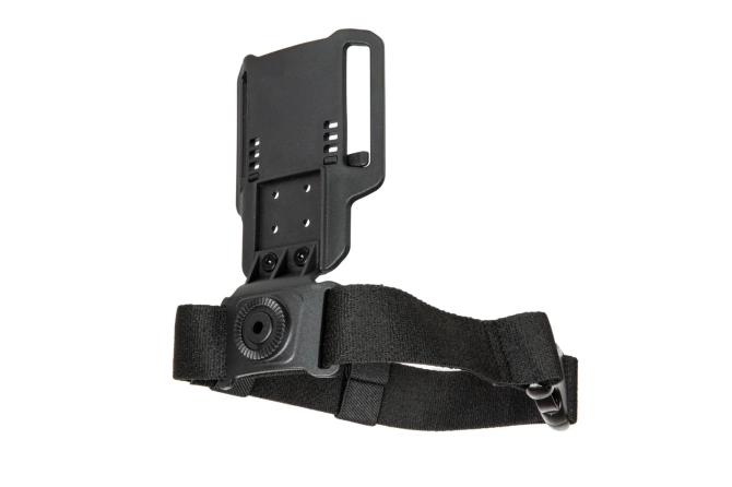 Drop leg platform made out of polymer material that fits belts with a maximum width of 68mm. The drop leg platform is compatible with - among others - Amomax holsters and polymer pouches as well as Quick Release mounts. The drop leg platform has an additional thigh belt.