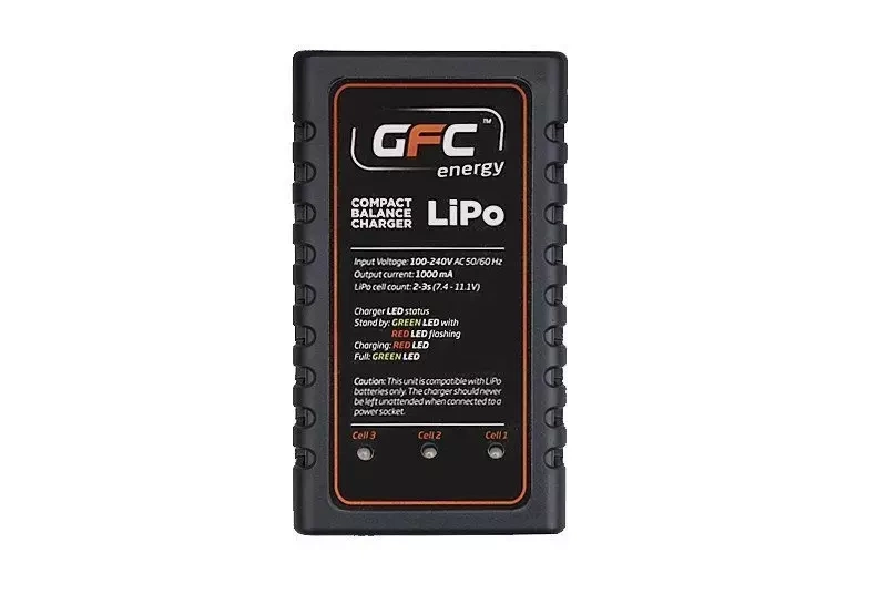 A very intuitive and easy to use smartcharger by GFC Energy, equipped with a built-in balancer. Can be used to charge both 7,4 V as well as 11,1 V LiPo batteries. The charger is supplied with an autodetection system allowing it to automatially go into standby mode after the charging process is finished.