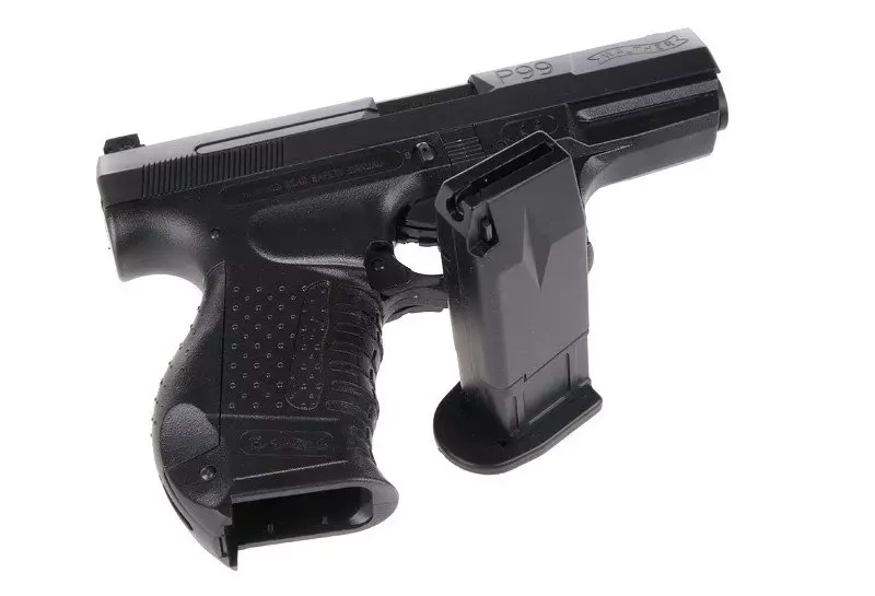 Umarex presents a spring-operated replica of the German Walther P99 pistol. The company is known for its frequent collaborations with firearms manufacturers and this time, too, a full license from Walther Arms has been sought, resulting in eye-catching original markings on the body and box, identical to those on the firearm prototype.