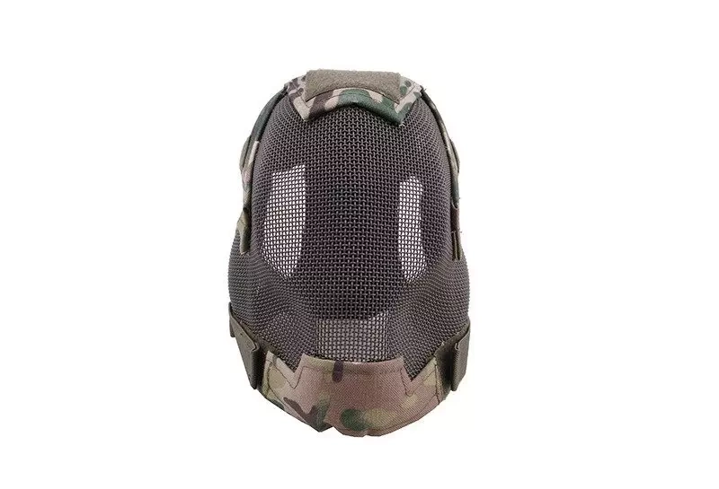 The mask is made of a steel net which is covered with a special plastic. This guarantees  the mask’s durability against the adverse weather conditions and rust. After putting the mask on the head it is secured with a number of elastic bands. All of the edges are covered with a fabric which secures the skin from the netting’s sharp edges.