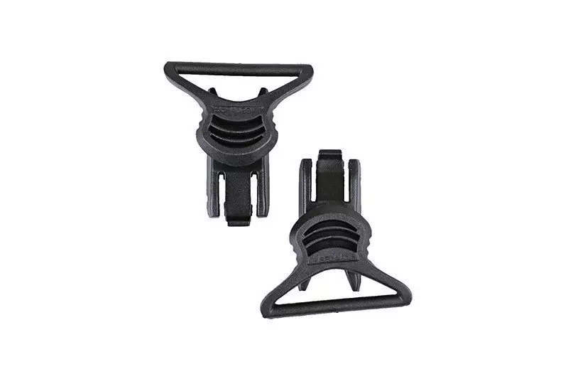 A set of two goggle swivel clips for goggles with a 36 mm band. The clips are designed to be mounted onto side rails of FAST type helmets.