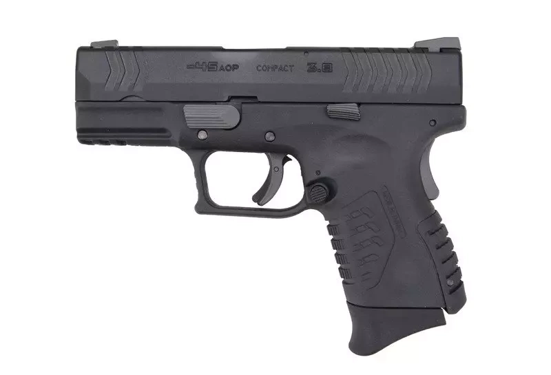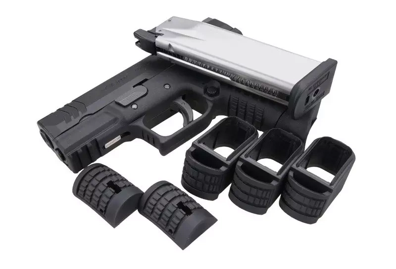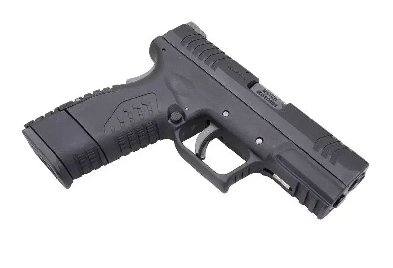 Zastosowany w konstrukcji pistoletu obustronny zwalniacz magazynka pozwala na wygodne korzystanie z repliki tak osobom prawo- jak i leworęcznym.