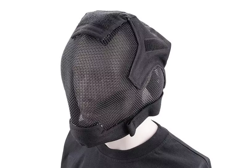 The mask is made of a steel net which is covered with a special plastic. This guarantees the mask’s durability against the adverse weather conditions and rust. After putting the mask on the head it is secured with a number of elastic bands. All of the edges are covered with a fabric which secures the skin from the netting’s sharp edges.