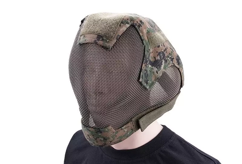 The mask is made of a steel net which is covered with a special plastic. This guarantees the mask’s durability against the adverse weather conditions and rust. After putting the mask on the head it is secured with a number of elastic bands. All of the edges are covered with a fabric which secures the skin from the netting’s sharp edges.