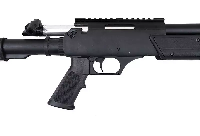The sniper rifle replica is made of metal and high quality plastic. The metal made elements are as follows: the minor elements and also the barrel, the bolt carrier, the cocking handle, the RIS rail and the trigger. The rest of the elements such as the front grip, the body, the pistol grip and the magazine and the stock are made of plastic what guaranties a significant decrease of the construction's weight.