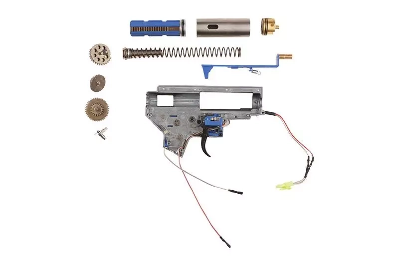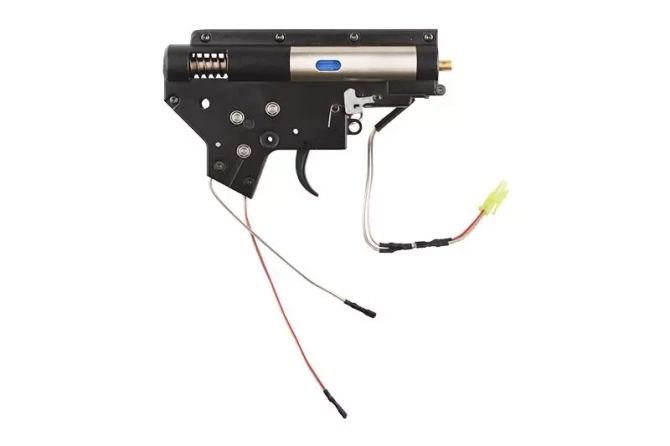 Complete v.2 Enter and Convert™ gearbox dedicated to M4/M16 type replicas. This is a perfect solution for those who are going to buy a good-quality gearbox in reasonable price. The frame was adjusted to 8mm bearings mount, and thanks to design enhanced in neuralgic places, even stronger springs may be applied in it. The gearbos is equipped with Enter & Convert™ system of quick spring change.