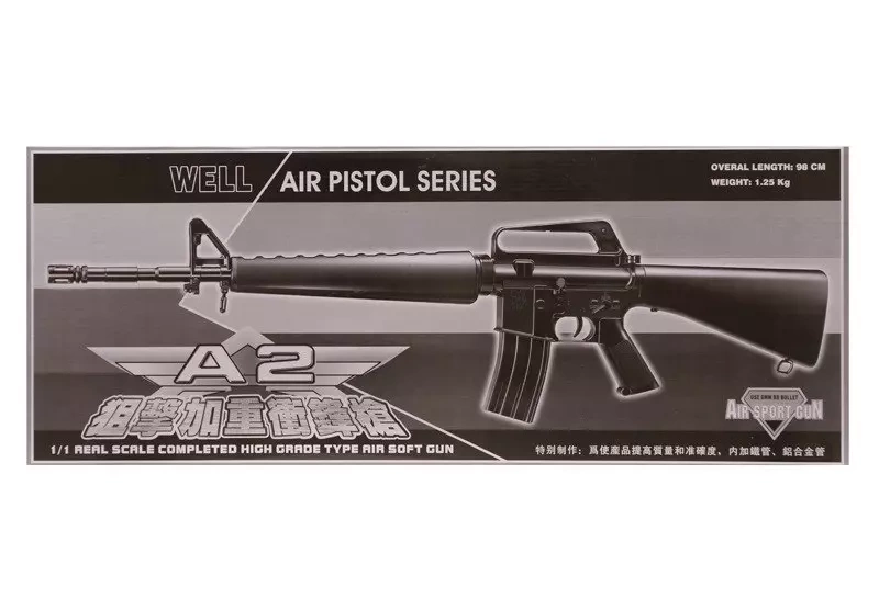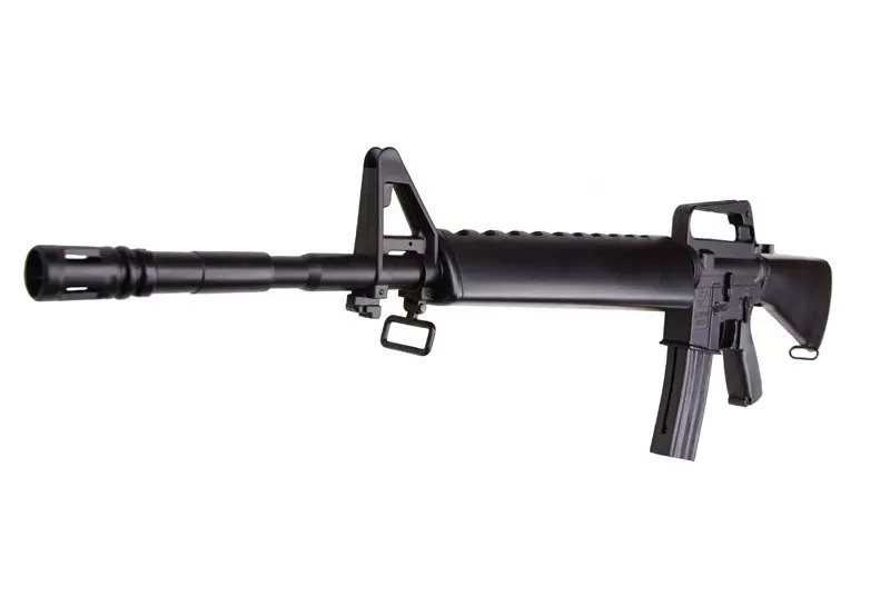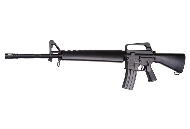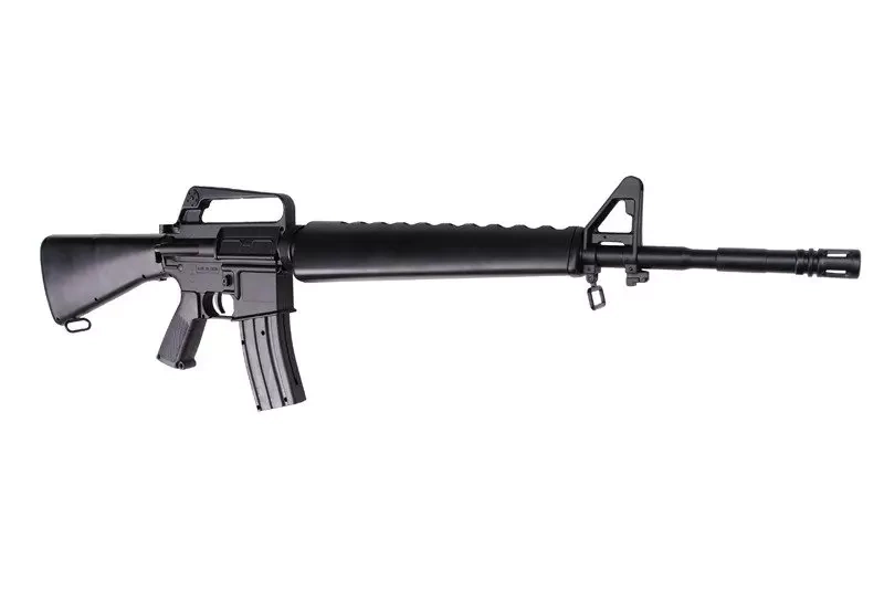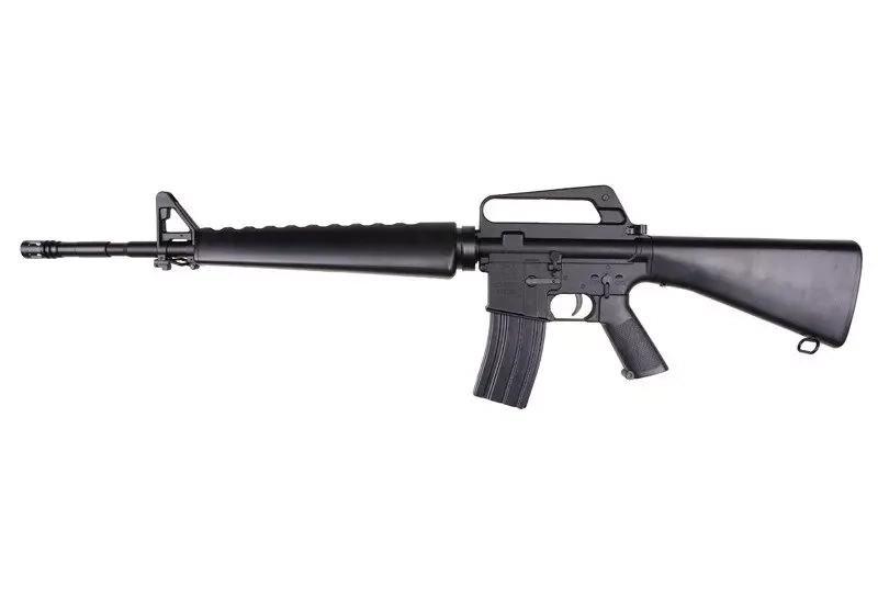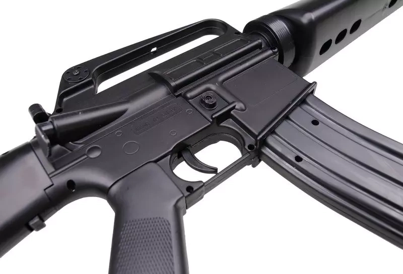 Replika karabinka szturmowego M16A1 wykonana została z bardzo wytrzymałego tworzywa sztucznego. Charakteryzuje się dobrą jakością wykonania i dbałością o szczegóły takie jak np. przestawny przeziernik w rączce transportowej. Model ten wyglądem nawiązuje do M16A1 używanego w wojnie Wietnamskiej przez armię Stanów Zjednoczonych. Dzięki wygodnemu przedniemu chwytowi o trójkątnym profilu i odpowiednio dobranej kolbie możemy przyjmować idealną pozycje strzelecką, gwarantującą precyzyjne skupienie kulek. Wygodny chwyt transportowy z przestawnym przeziernikiem gwarantuje bezpieczny i wygodny transport repliki.
