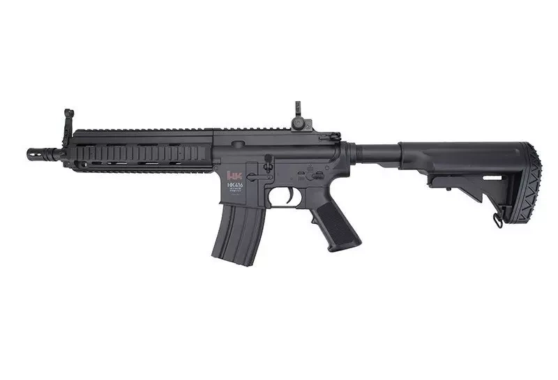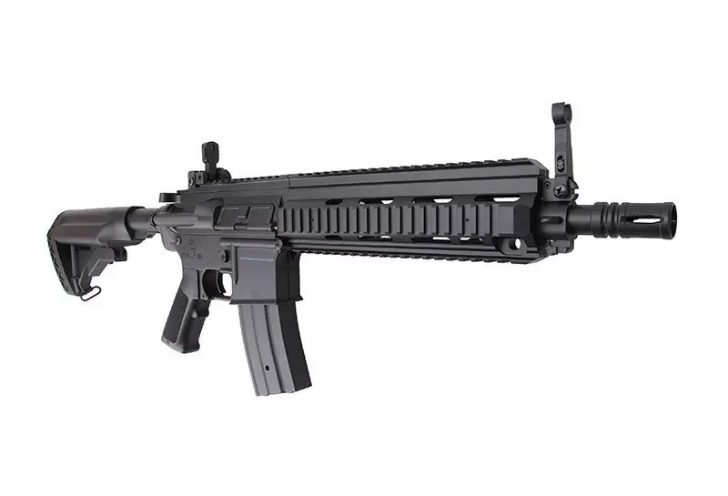 A replica of the HK416 assault carbine in the CQB version. Thanks to Umarex licensing, the replica has markings relating to the original. The body of the replica and its entire main structure are made of synthetic material, while some small elements - pins, aiming devices, magazine - are made of metal.