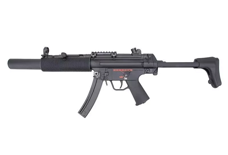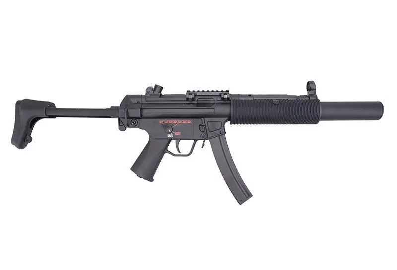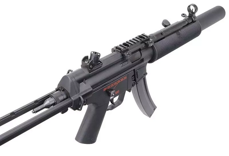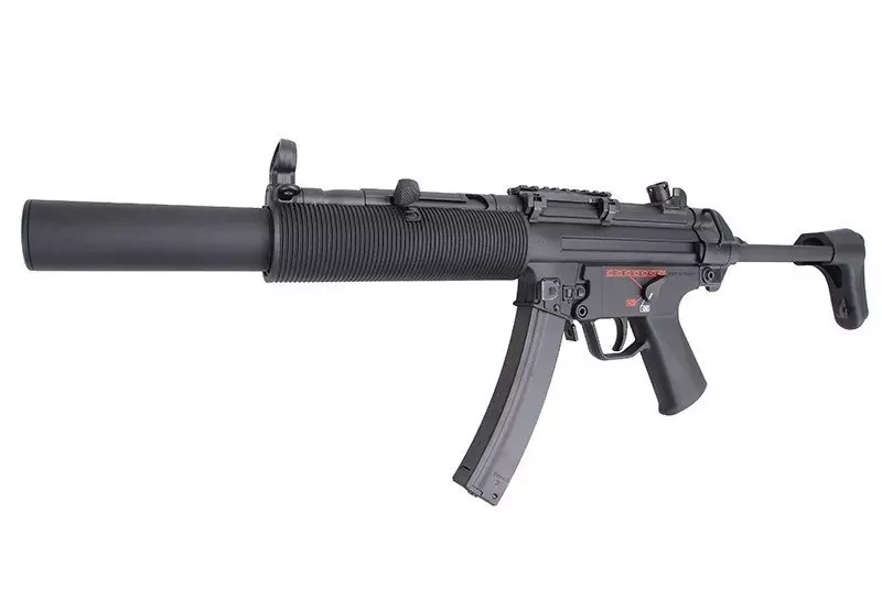 The replica is delivered with a sound suppressor and a mount allowing the attachment of a red dot sight meeting the RIS standard.