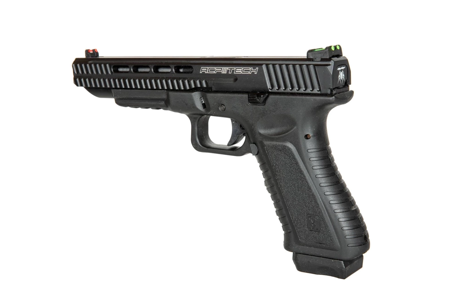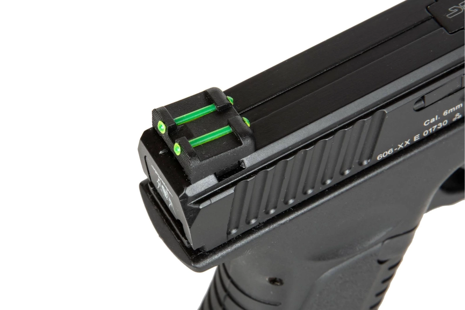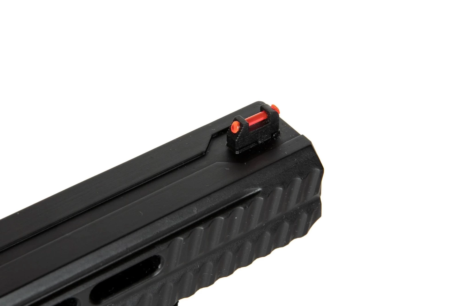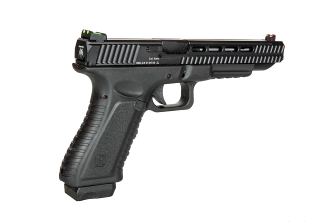 The replica has a strong blow-back system, which makes it even closer to its real firearm counterpart. It causes the slide to be retracted with each shot, and after the last BB has been fired, it locks it the rear position. Under the barrel, there is a RIS mounting rail, which allows the pistol to be equipped with various additional tactical accessories, such as tactical lighting or a laser sight. Moreover, the replica is equipped with fiber optic sights that make it much easier to hit the target.