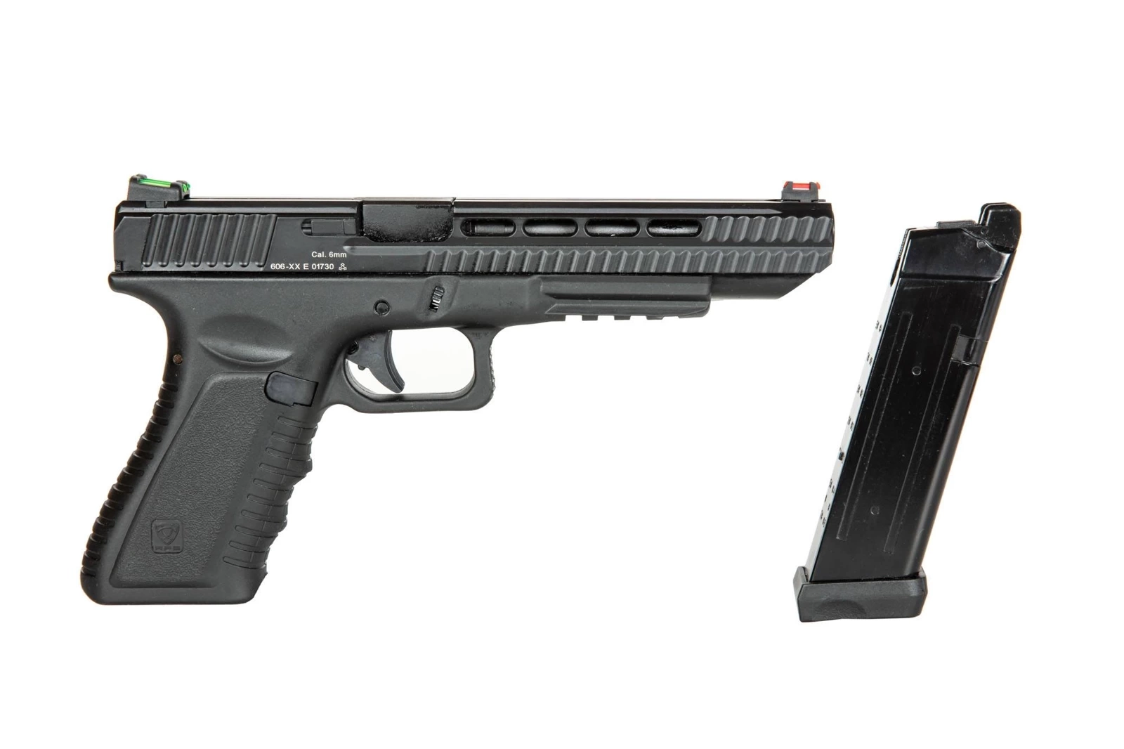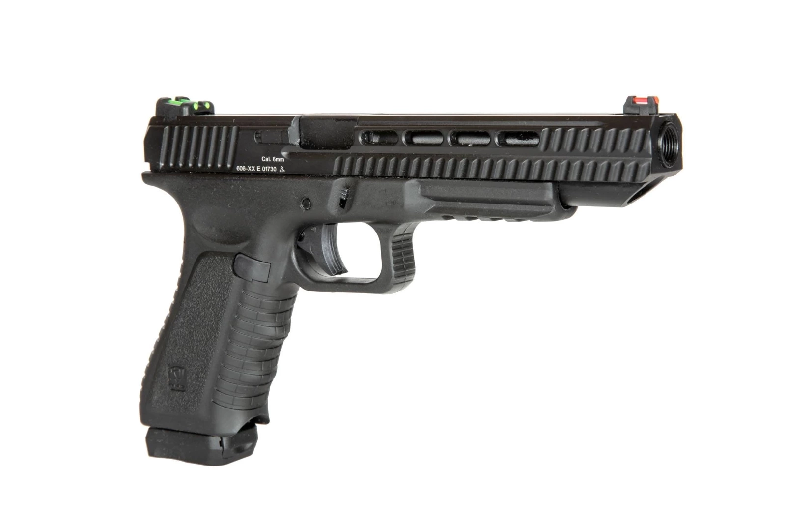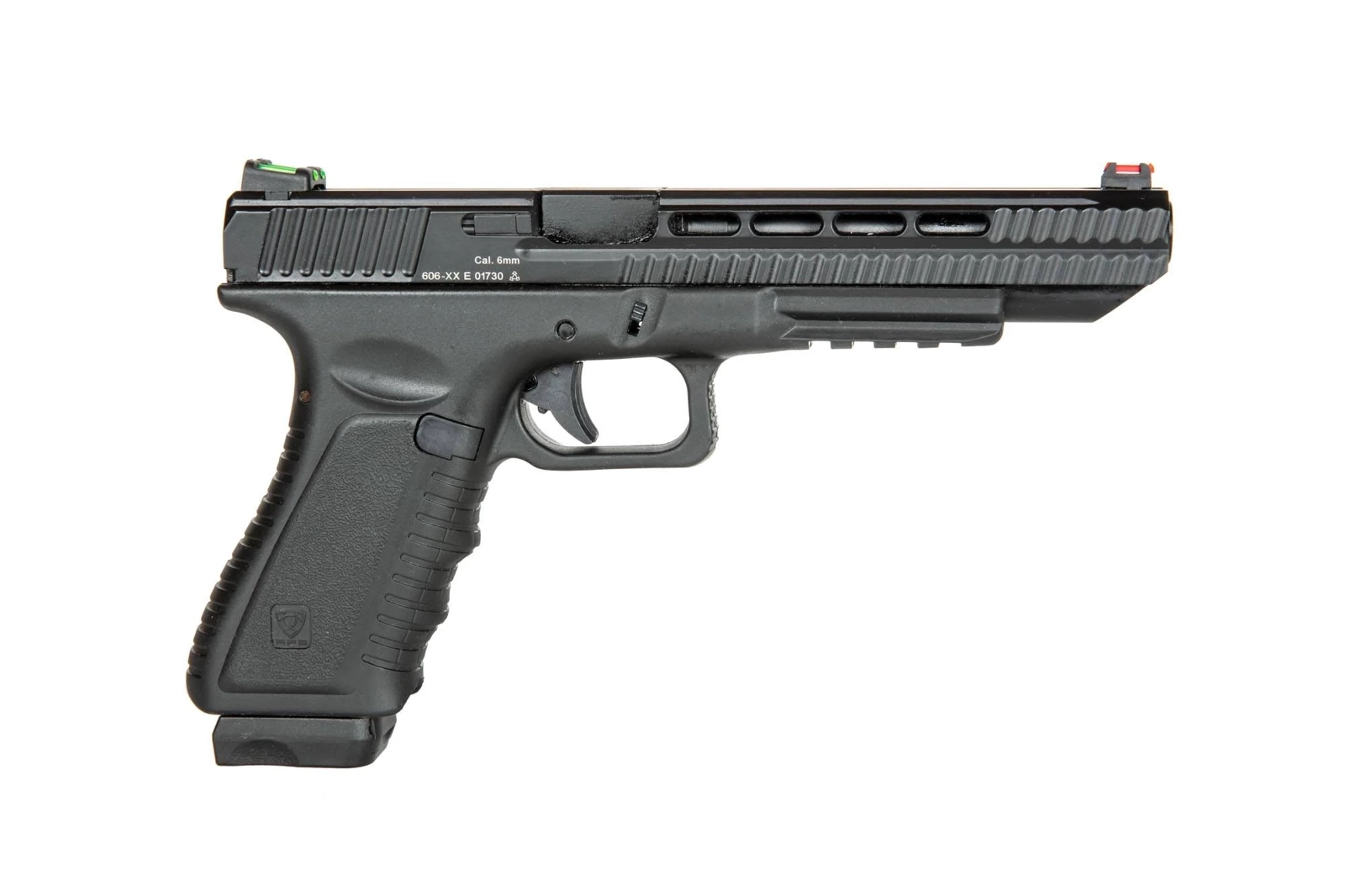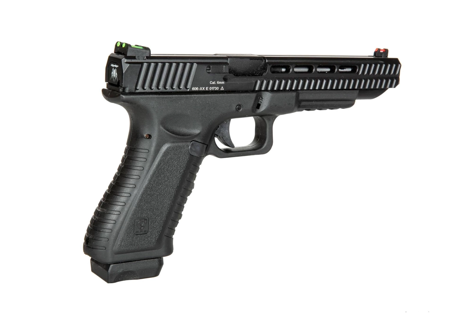 Action Combat Pistol 606 is a precisely and carefully made pistol replica with a size and weight that’s similar to a the real firearm counterpart it’s based on. The same type of plastic as in the original was used in the construction of the frame. All other elements, such as the slide, magazine or the outer barrel, are made out of metal.