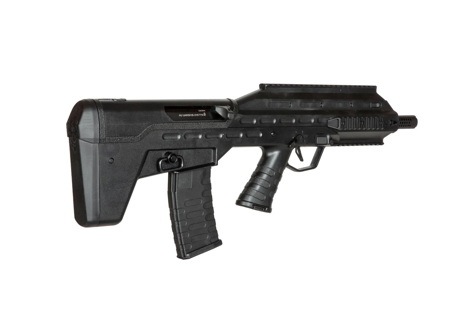 The UAR 501 manufactured by APS is an innovative replica equipped with a special hybrid gearbox, bearing the brand name "APS HYBRiD Gearbox". The abbreviation UAR stands for Urban Assault Rifle, i.e. a model designed for MOUT activities (fighting in an urban environment) and CQB (short distances). The compactness and high maneuverability of the replica was achieved thanks to the bull-pup system. Inside, we managed to fit an effective 385mm inner barrel, with the entire length of the replica being only 645mm.