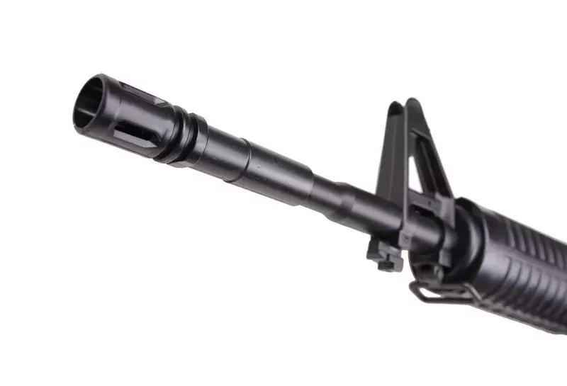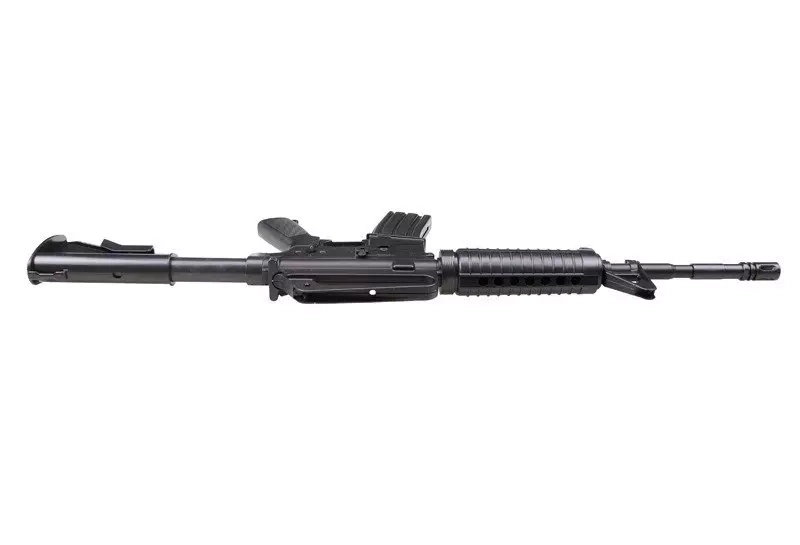 Replica Assault Carbine MR-711 was made from highly durable ABS. It is characterised by good build quality and attention to detail such as the adjustable sight in the carry handle. The design of this model is reminiscent of early versions of the Colt carbine 933 Commando eagerly chosen by the special forces of many countries. This model uses the 5-position folding stock known from the M4 carbine. This allows us to adjust the replica even better to our shooting stance.