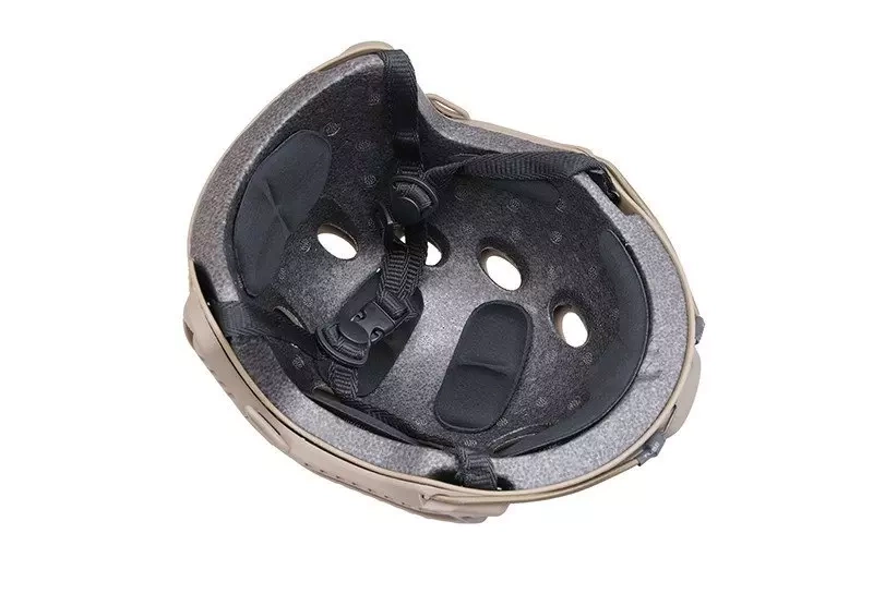 On the outside, the helmet has an integrated night vision mount, with additional an hooks on elastic bands to increase the stability of the NVG. On both sides we find universal mounting rails for mounting accessories. Velcro straps occupy a large part of the shell's surface on the side and at the back, which can be used for the installation of patches, identification elements, or visible or infrared light tags.