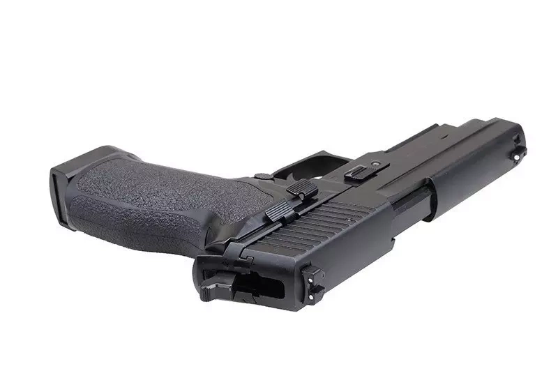 The replica is made entirely of metal, with the exception - naturally - of the handle facings, made of ABS, and the magazine foot. Combined with a well-functioning and quite 'kicking' blow-back, this gives a sense of greater realism, as well as contributing significantly to the durability of the construction. The mechanical instruments marked with white dots are also highly visible in low visibility conditions.