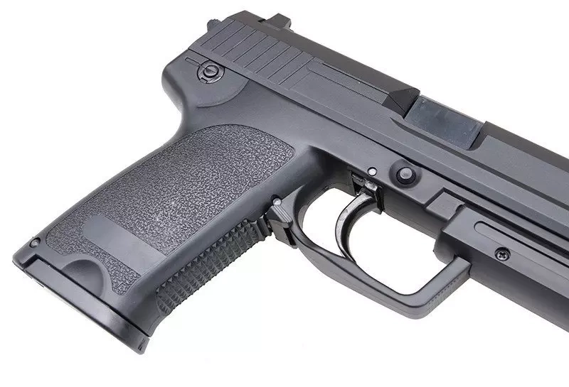 The replica is made mostly out of plastic. It is powered by green gas. The gas container is located in the magazine. The replica has a safety lock that blocks the trigger. It is possible to fire the shot directly by pressing the trigger and by pre-tensioning the hammer. The trigger gently retracts and it is not necessary to apply so much force.