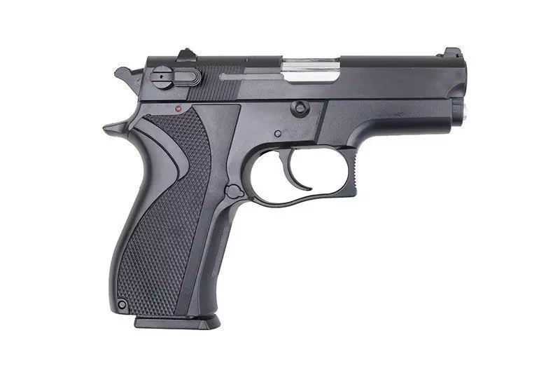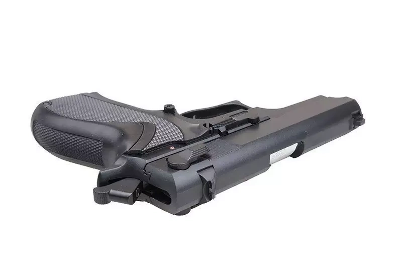 The replica is made mostly out of plastic. The magazine and the small assembly elements are made out of metal. The replica is powered by green gas, the gas container is located in the replica's magazine. The safety is located on the rear part of the slide and it protects against accidental shots. The firing of the shot can take place directly by pressing the trigger or by pre-tensioning the hammer, thanks to which the trigger works lighter.