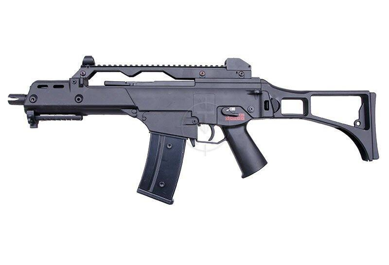 The JG0638V2 is an electric subairsoft rifle by JG. It is made of strong and lightweight polymer, while components such as the set of mechanical aiming devices, outer barrel, flame suppressor and front RIS rail are metal.