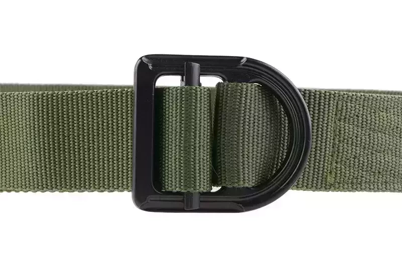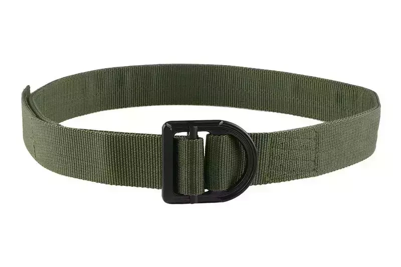 A solid belt sewn from a durable nylon tape. Features a massive,