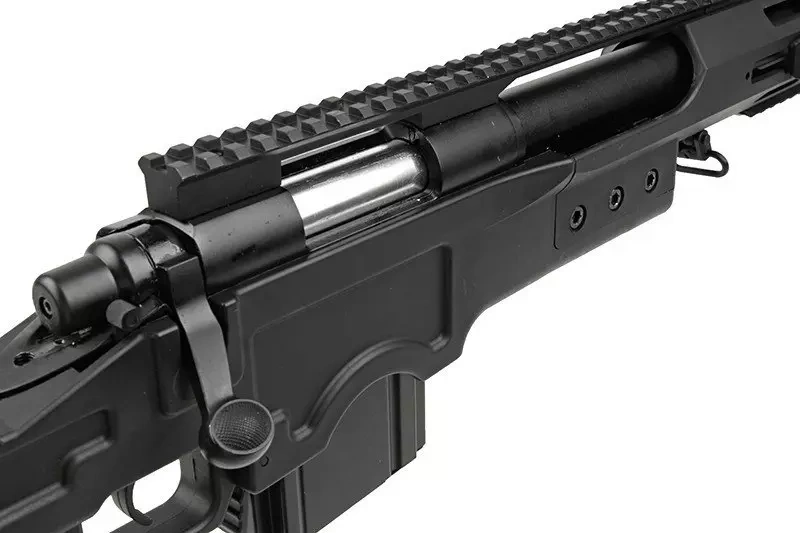 Replika karabinu snajperskiego MB4411A o napędzie sprężynowym produkcji firmy WELL. Konstrukcja wewnętrzna została oparta na poprzednich, dobrze znanych replikach serii MB. Karabin wyposażono w zamek czterotaktowy, należy go przeładować przed każdorazowym oddaniem strzału. Replika wykonana została z metalu oraz wzmocnionego włóknem szklanym tworzywa nylonowego. Metalowa jest tu masywna lufa zewnętrzna, podstawa grzbietowej szyny RIS, wszystkie szyny montażowe RIS, prowadnica kolby oraz oczywiście mechanizm wewnętrzny wraz z zespołem spustowym i rączką przeładowania. Z nylonu wykonano łoże, chwyt pistoletowy, a także kolbę.