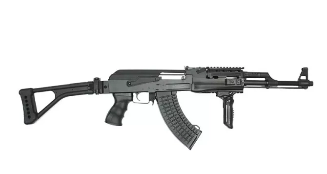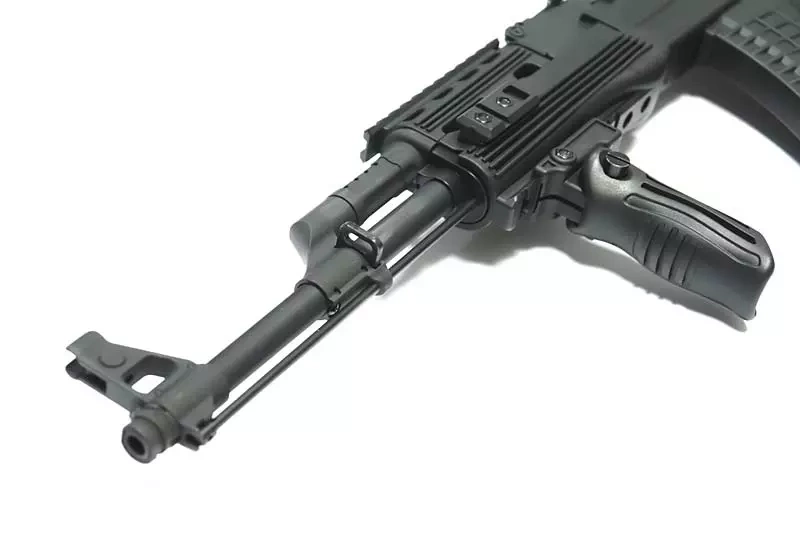 The Cyma made assault rifle replica [CM028U] is another  modified version of the legendary assault rifle. The replicas was made of steel elements and of plastic. The profiled pistol grip, the tactical grip, the stock, the body, the foregrip and the magazine were made of plastic. The barrel, the aiming sights and the trigger were made of metal.