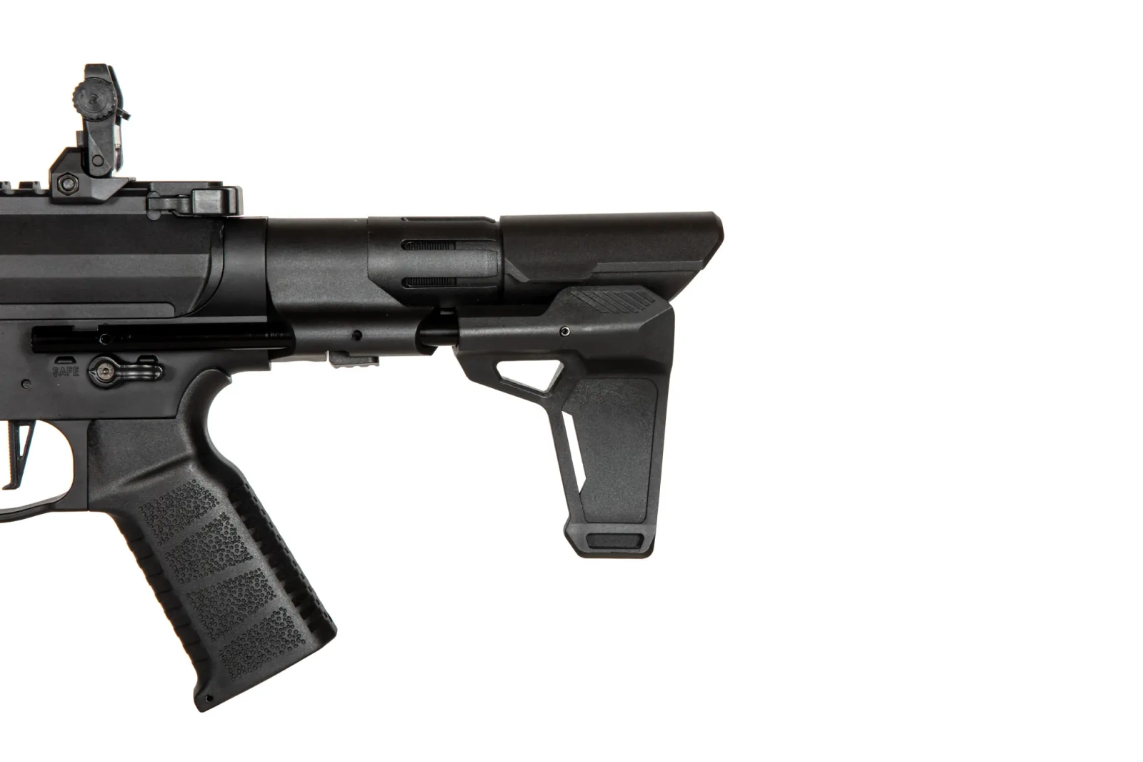The replica comes with a build-in optical electronic system. A system based on two optical sensors detects the location of the piston rack and the trigger. Thanks to this the trigger is much more responsive, and a full cycle with each shot, which significantly improves the replica's longevity.