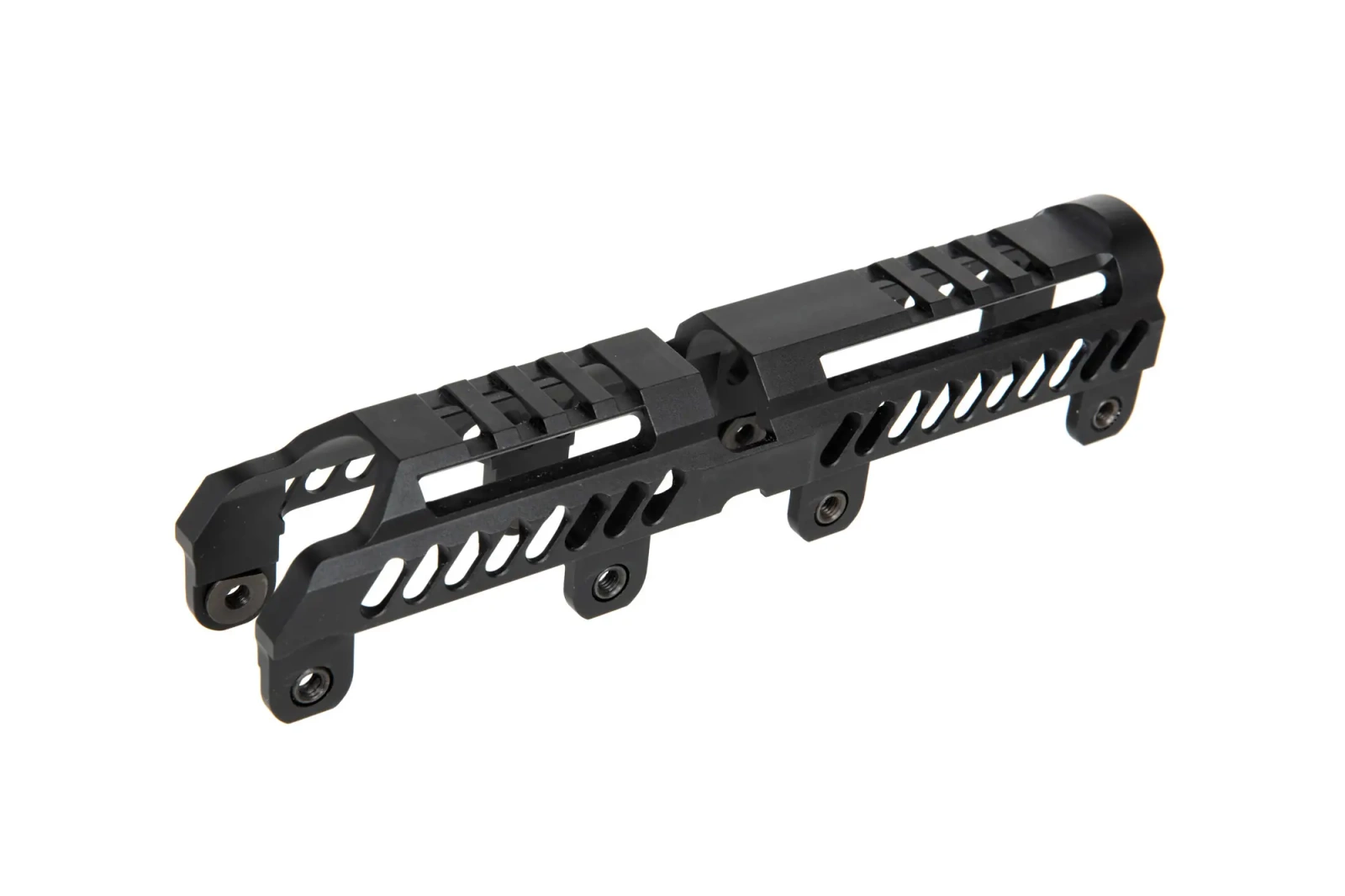 Aluminum gas tube cap provided with two sections of 35mm RIS rails designed for mounting on the handguard of the B-10L. Part of the kit Sport-1 for full-size and intermediate AKs (AKM, AK-74, AK-105, AK-104, etc.).