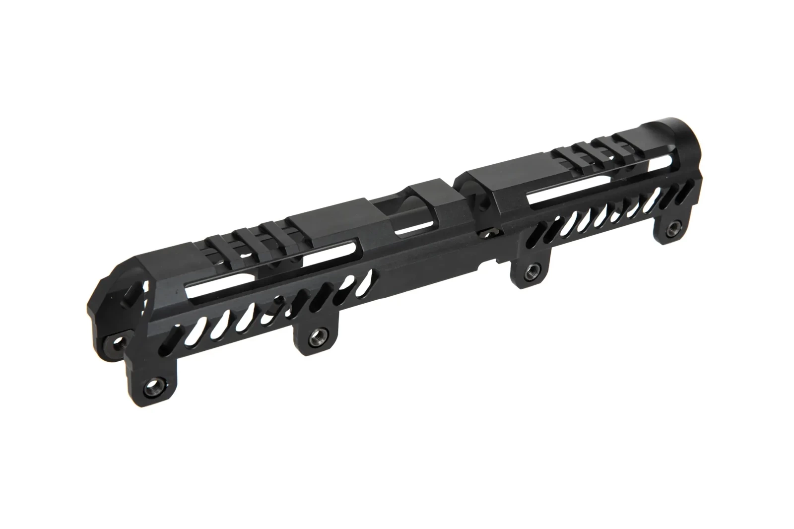 Aluminium gas tube cap fitted with two sections of 35mm RIS rails designed for mounting on the handguard of the B-10L. Part of the kit Sport-4 for full-size AKs (AKM, AK-74 etc).