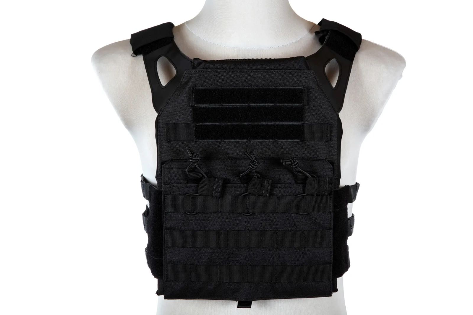 The Plate Carrier comes equipped with a built-in, universal pouch that can hold 3 M4 / M16 magazines as well as AK type magazines.. The magazines are secured with shock cords with handles - this solution allows you to quickly retrieve and reload the magazine if necessary.