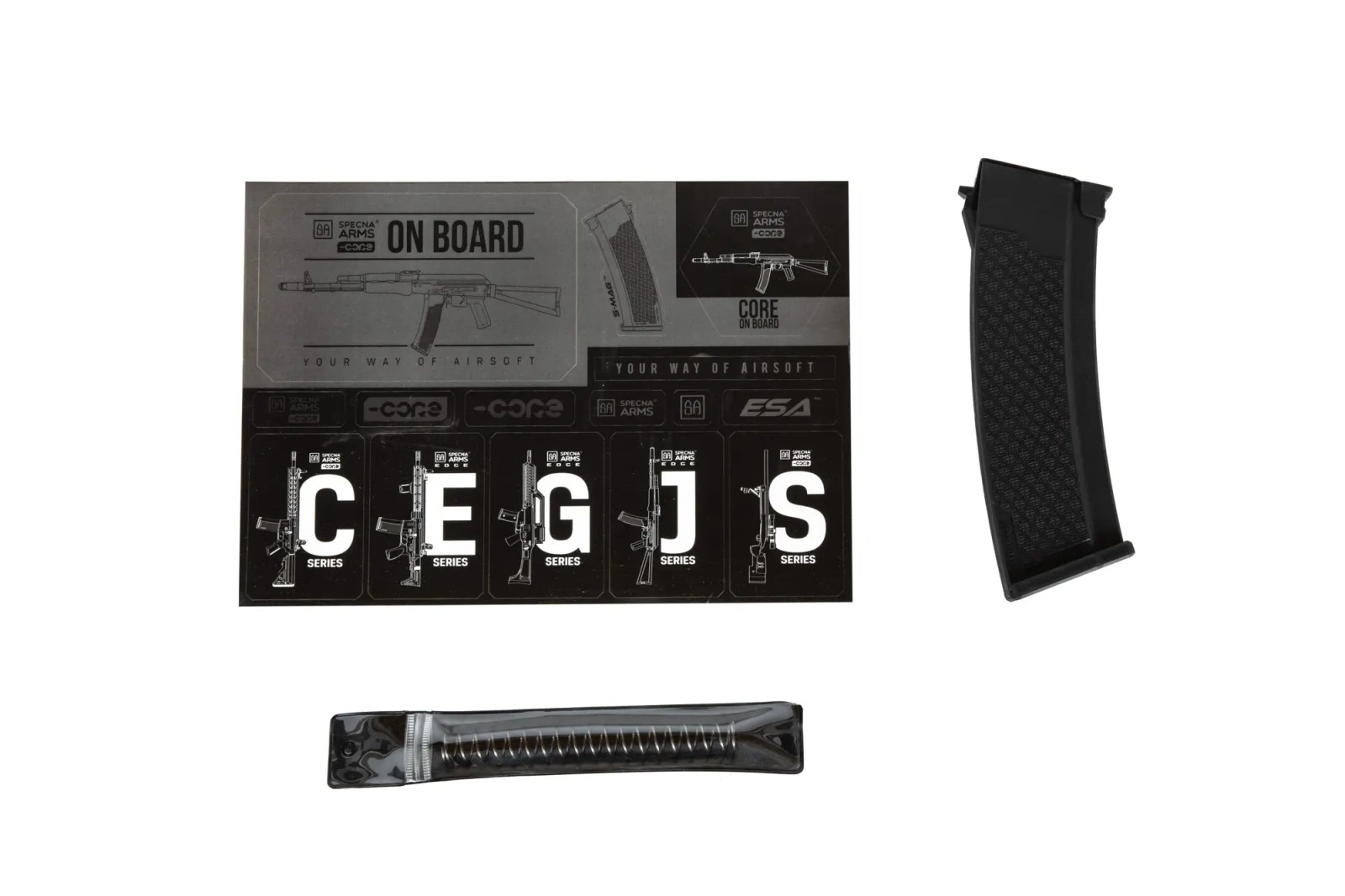 Specna Arms, in order to meet the expectations of its customers, presents the CORE ™ line - a unique series of replicas that introduces a new quality on the airspeed replica market. An affordable price combined with an innovative quick spring change system, great performance straight out of the box and high-quality components makes this series an excellent choice for both beginners and experienced airsoft players alike.