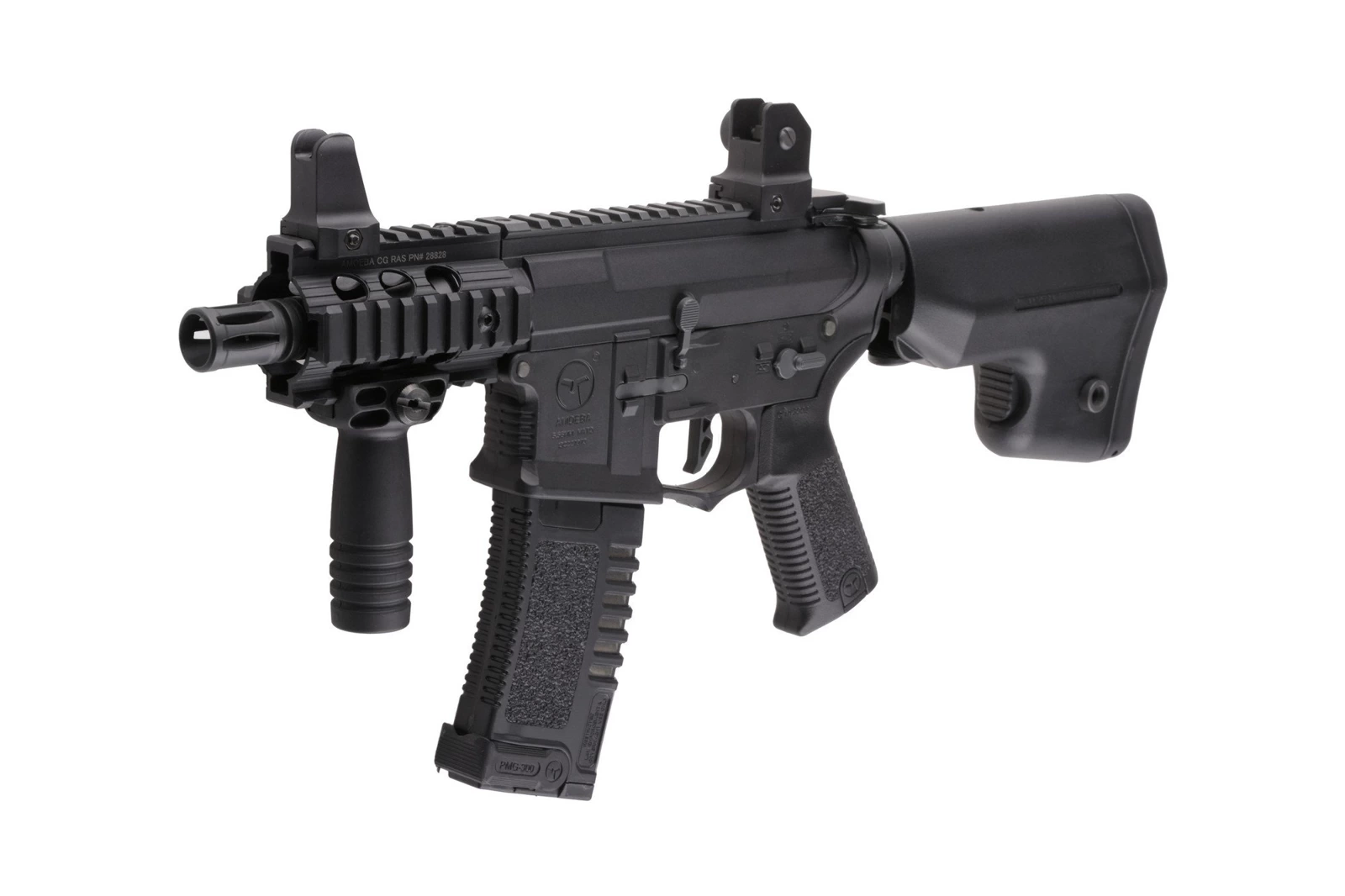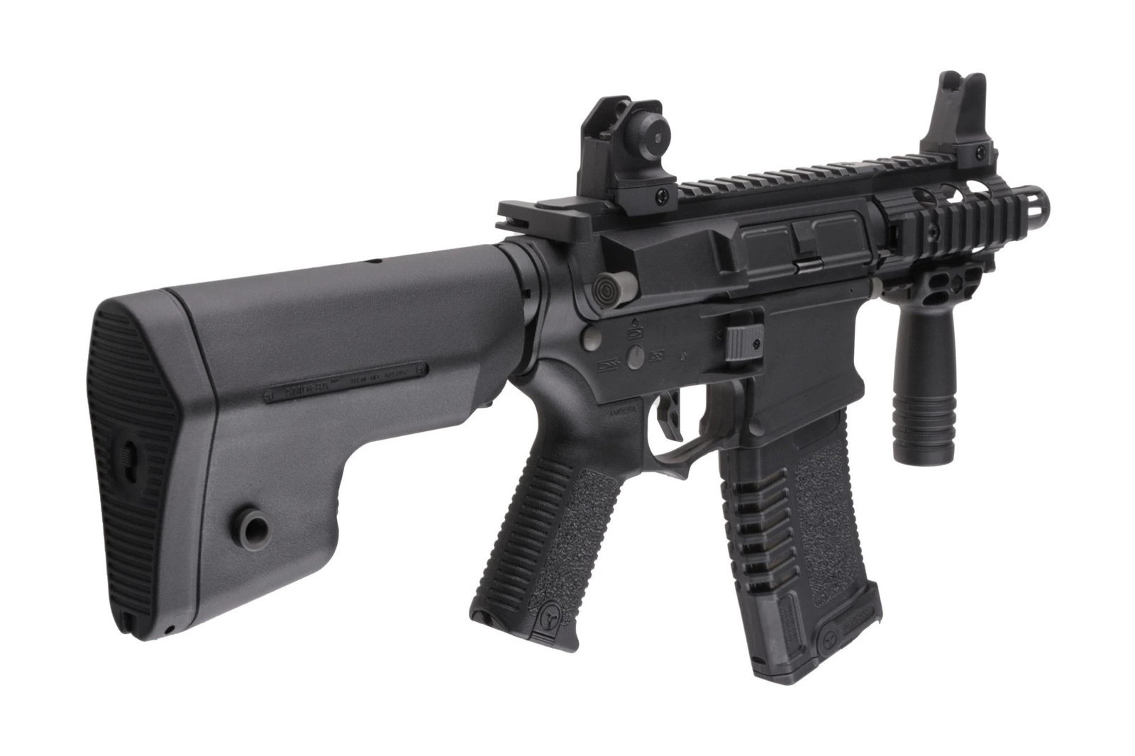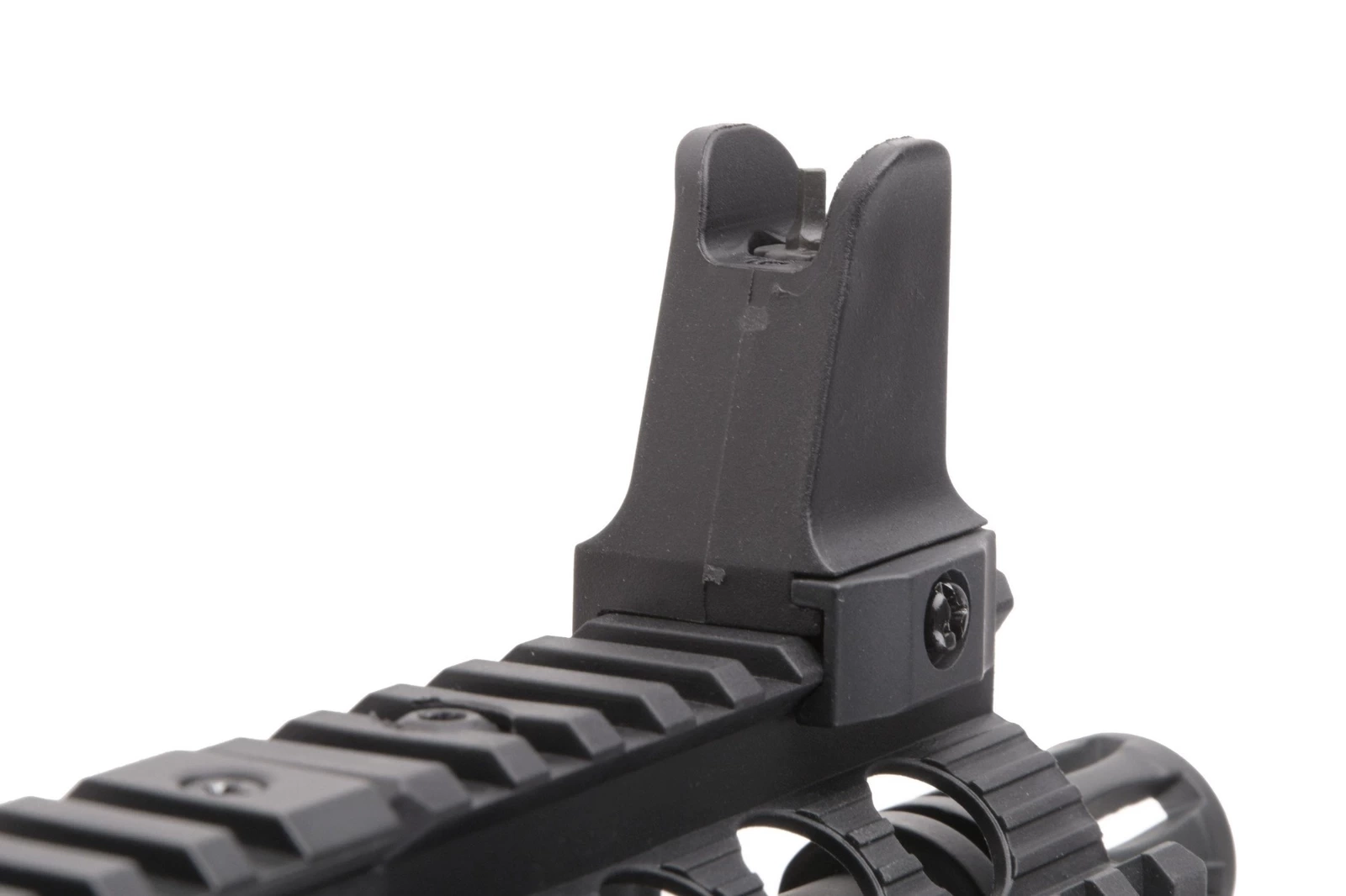 The all-purpose 22mm RIS rails are situated on the front grip and on the top of the receiver, thanks to which the replica may be fitted with a wide range of additional accessories, from a scope to lighting and tactical grips. The rifle has iron sights mounted on the RIS rail. A vertical front grip goes together with the replica.