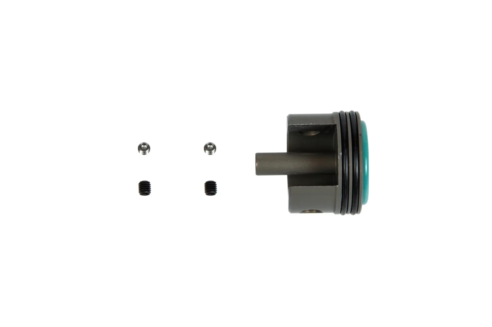 Double sealed cylinder head made of high-quality aluminum. Precise machining on CNC machines guarantees a perfect fit with the cylinder. It increases the air-tightness of the pneumatic system and the quality of the shot's fired. It is used in power tuning.