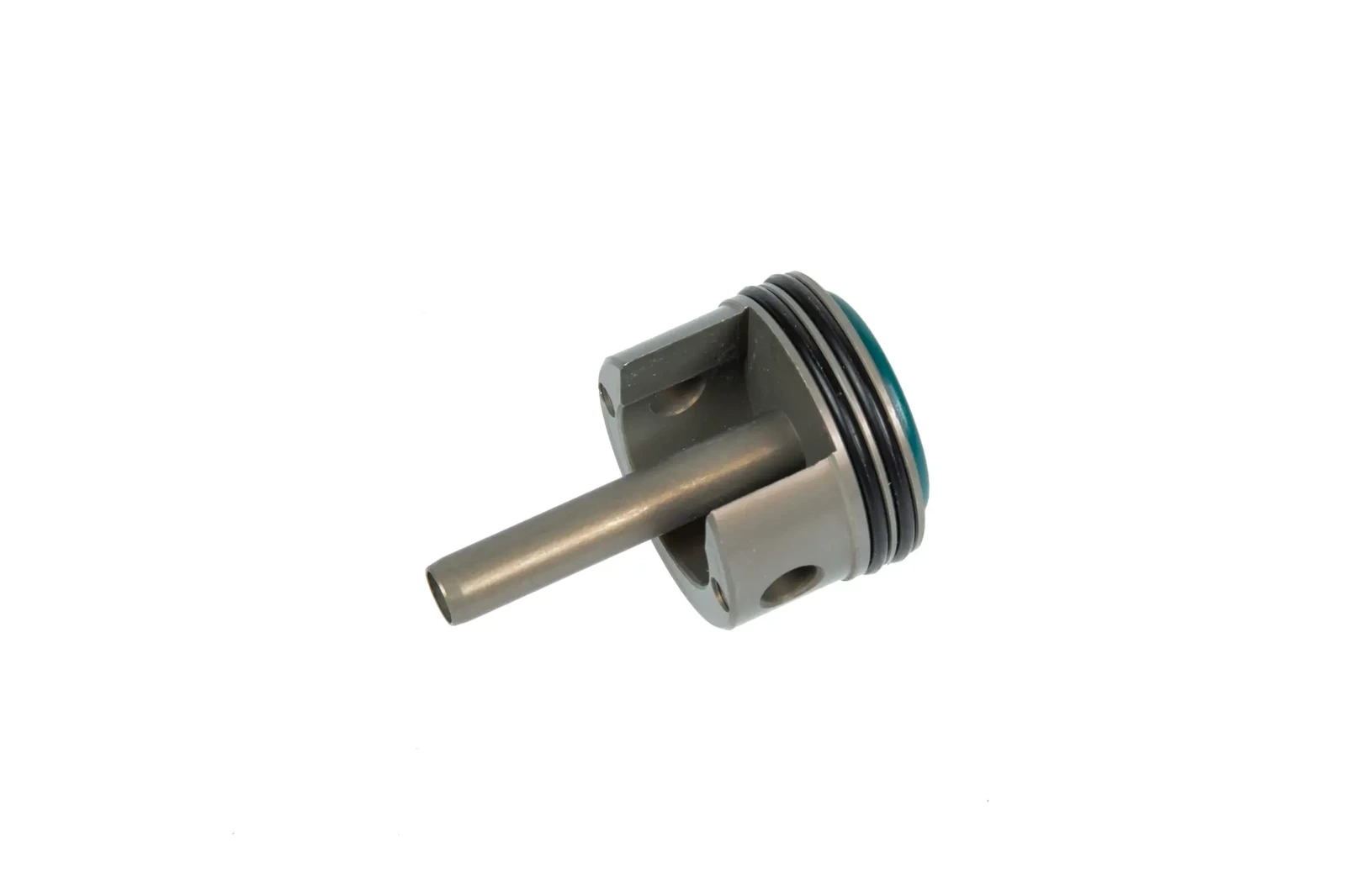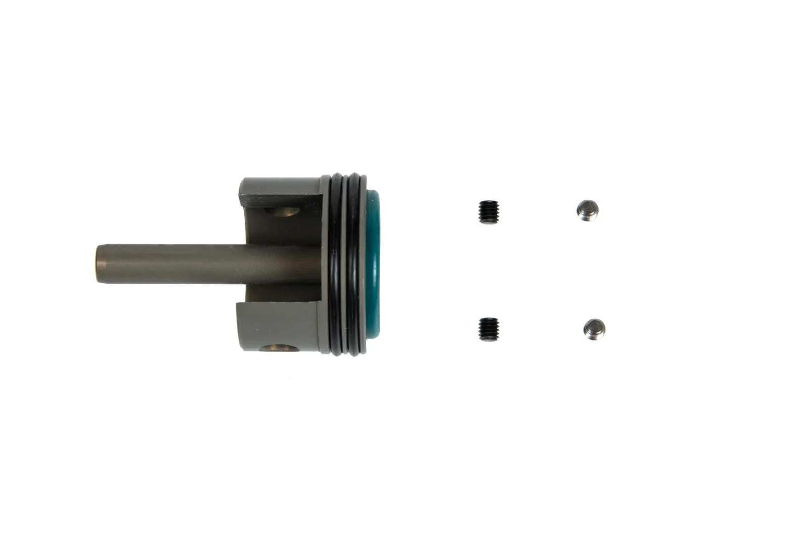 Double sealed cylinder head made of high-quality aluminum. Precise machining on CNC machines guarantees a perfect fit with the cylinder. It increases the air-tightness of the pneumatic system and the quality of the shot's fired. It is used in power tuning.