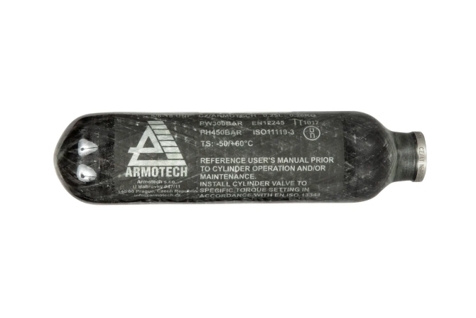 Made out of durable composite with a steel core, the air tank is designed to work with HPA systems. The composite cylinder body is a much lighter alternative to cylinders made of metal, while maintaining similar durability. Capacity 0.25l (25cl) and 4500 psi (310 bar). The air tank has 5 years of legalization - from the date of production.